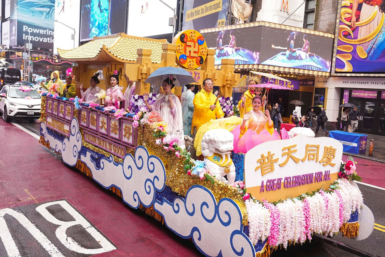 Na stanici Grand Central u 42. ulici na Manhattanu, paradu je pozdravilo nekoliko Kineza. Izrazili su svoju podršku držeći transparente na kineskom i engleskom jeziku na kojima je pisalo: „Podržavamo Falun Gong.“