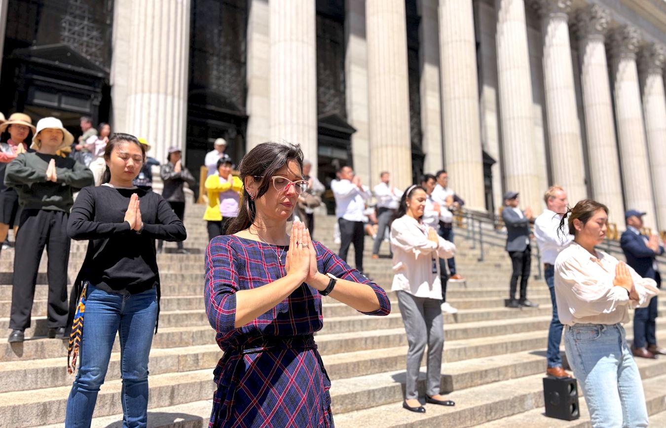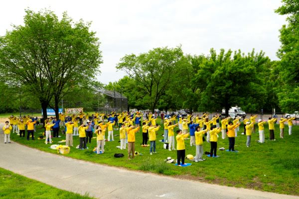 Praktikanti u New Yorku su oko 13. maja održali demonstracije vježbanja na otvorenom na nekoliko mjesta kako bi ljudima govorili o Falun Dafa.