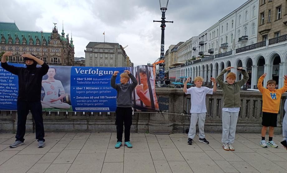 Praktikanti Falun Dafa održavaju informativne dane u Hamburgu, u centru njemačkog grada, petkom i subotom. Predstavljaju Falun Dafa i govore ljudima kako Komunistička partija Kine (KPK) progoni tu praksu.