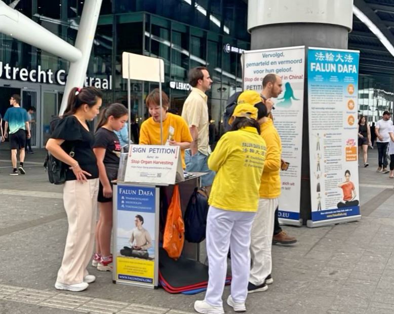 22. juna 2025, u blizini Centralne stanice u Utrehtu, Falun Dafa praktikanti održali su događaj, kako bi informisali javnost o progonu koji sprovodi Komunistička partija Kine (KPK) nad duhovnom praksom u Kini, uključujući i prinudnu žetvu organa koju KPK sprovodi nad pritvorenim Dafa praktikantima.