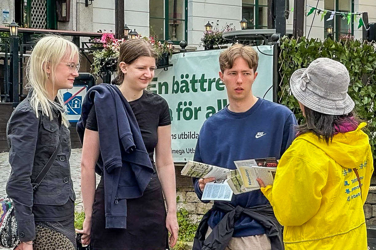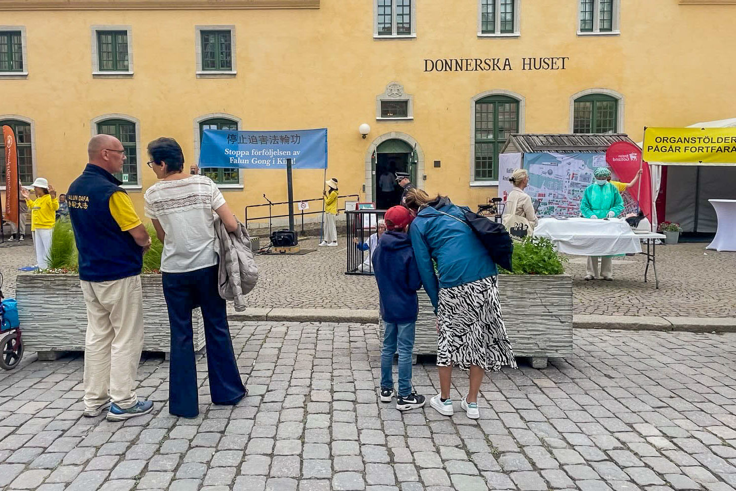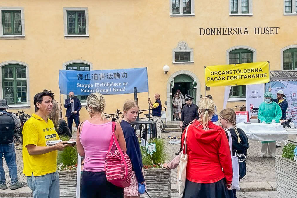 Praktikanti su predstavili Falun Gong (Falun Dafu) i obavestili ljude o 26-godišnjem progonu od strane Komunističke partije Kine (KPK). Njihovi napori su privukli pažnju i podršku brojnih švedskih političara i javnosti.