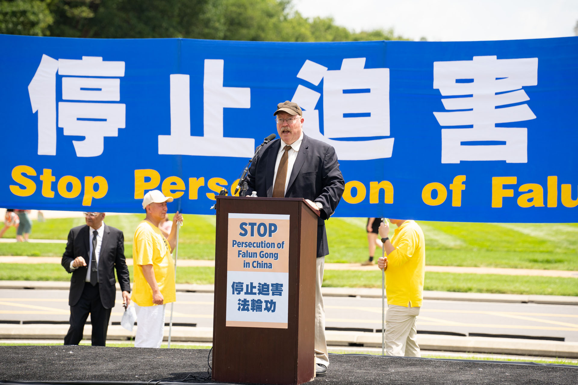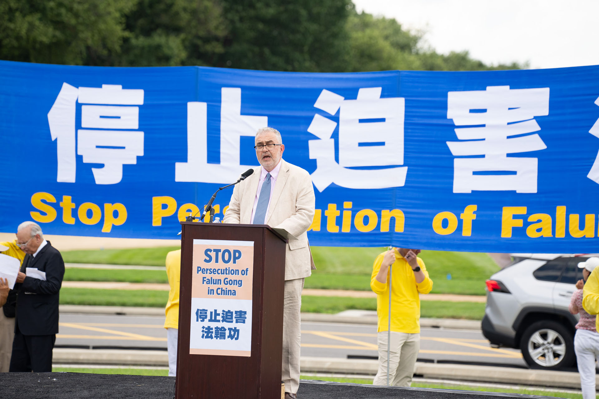 Rick Fisher, viši saradnik Centra za međunarodnu procjenu i strategiju, započeo je svoj govor rekavši na kineskom: „Falun Dafa je dobar”.