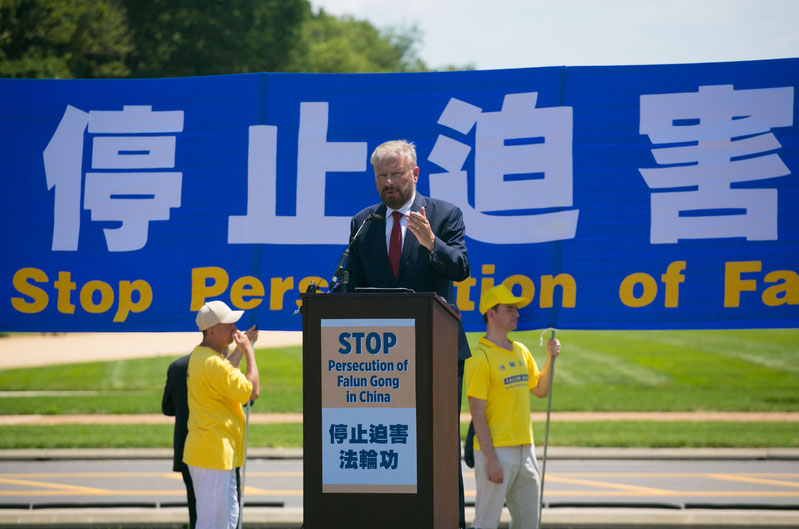 Mohamed Elsanousi, komesar Komisije Sjedinjenih Država za međunarodnu vjersku slobodu (USCIRF), je došao na miting da pokaže svoju podršku praktikantima i rekao: „Iz godine u godinu, ponavljaju se mučne priče o zlostavljanju praktikanata Falun Gong-a od strane kineske vlade: nadzor, uznemiravanje, novčane kazne, pritvaranja, zatvaranja, mučenja, medicinska nebriga, nehumani tretman, pa čak i smrt.