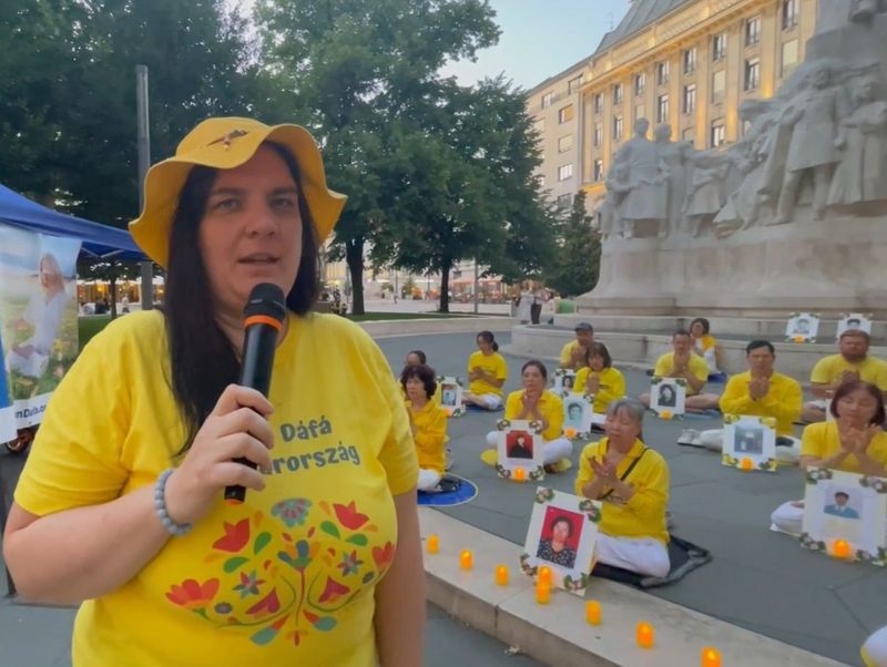 Eszter, glasnogovornica Mađarskog Falun Dafa udruženja, ispričala je o politici progona KPK: 'Ocrnite njihovu reputaciju, uništite ih financijski i eliminirajte ih fizički.' Dana 20. srpnja 1999., Jiang Zemin, bivši čelnik KPK, pokrenuo je progon Falun Gonga ovom objavom.” Rekla je: „Tijekom uhićenja diljem zemlje, te su noći praktikante Falun Gonga prisilno odvukli iz njihovih domova. Nakon te operacije uslijedilo je mučenje i ubijanje u kineskim radnim logorima, zatvorima i psihijatrijskim ustanovama. Ovo mučenje i genocid traju i dan danas.“
