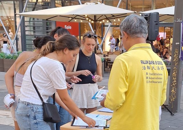 Jedan se par iz Indije zaustavio kako bi se raspitali o praksi pošto su im se svidjele vježbe koje su praktikanti izvodili. Čuvši činjenice o progonu, muškarac je izjavio: “Strašno je da se organ isporučuje prema unaprijed dogovorenom rasporedu i da netko zbog toga sigurno umire!” Poželjeli su praktikantima mnogo uspjeha u njihovim aktivnostima.