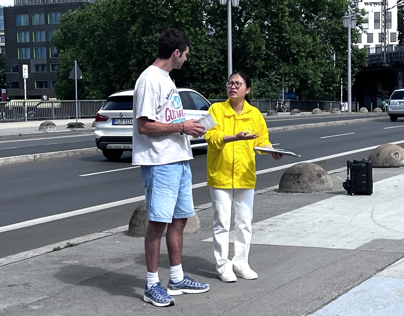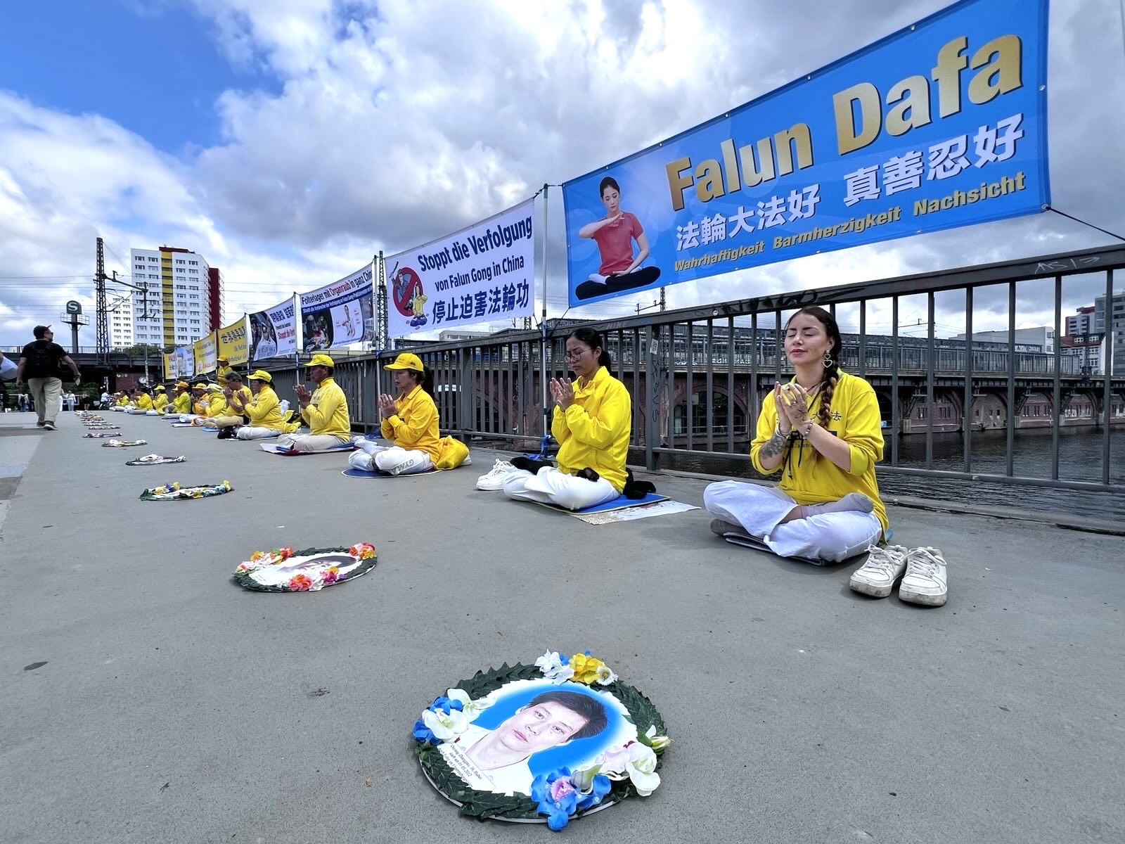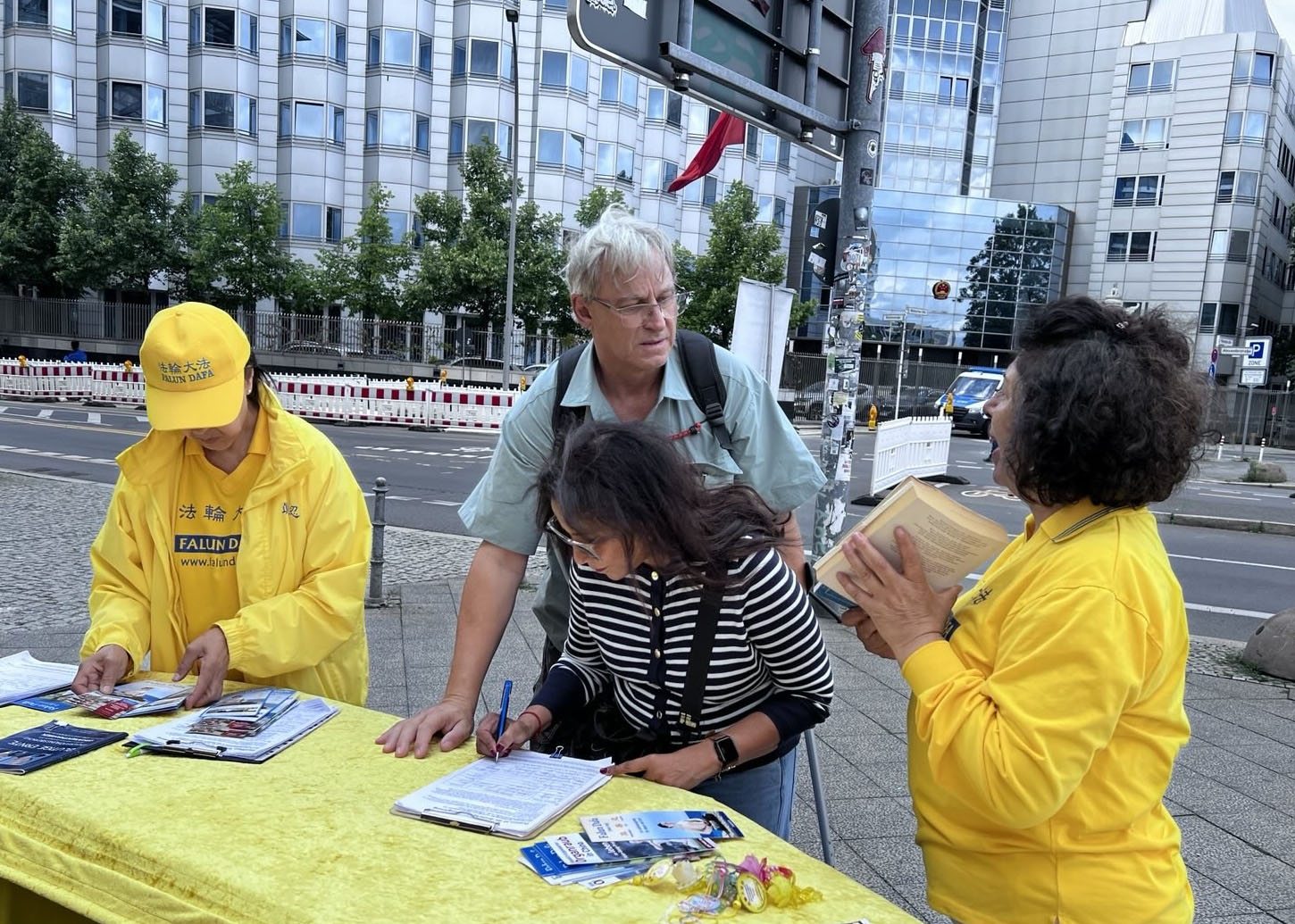 Progon Falun Gonga od strane kineskog režima traje već 26 godina. Od 17. do 23. jula ove godine, praktikanti Falun Gonga u Nemačkoj okupili su se ispred kineske ambasade u Berlinu i ispred kineskih konzulata u Minhenu, Frankfurtu i Diseldorfu. Držali su transparente, prikupljali potpise za peticije i predali pismo u kojem pozivaju Komunističku partiju Kine (KPK) da odmah okonča progon koji je u toku. Praktikanti su prolaznicima objašnjavali detalje progona i razotkrivali zločin žetve organa od živih praktikanata u Kini, koji su zatvoreni jer odbijaju da se odreknu svoje vere.