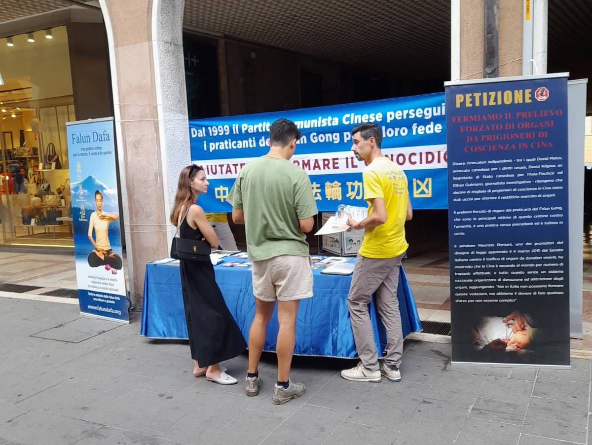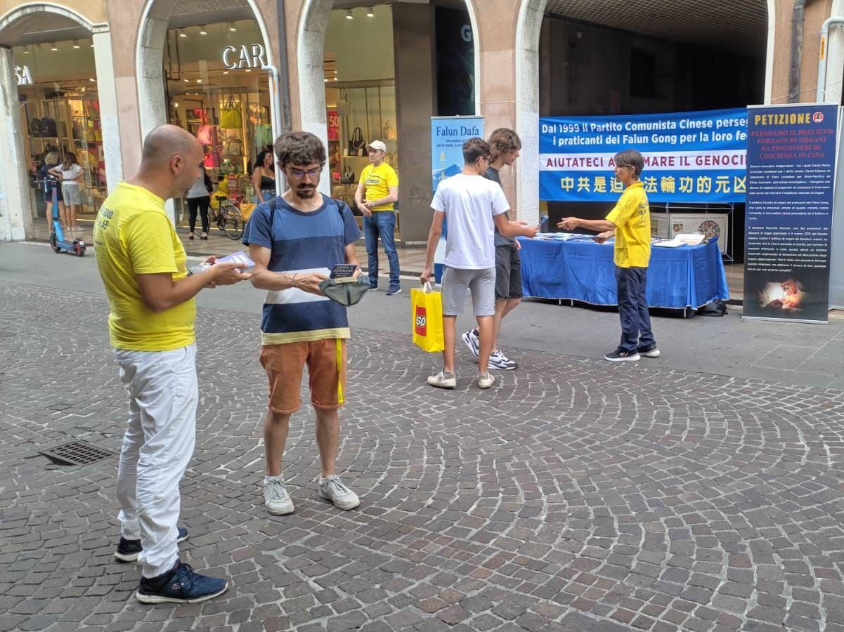 Praktikanti iz severoistočne Italije održali su aktivnosti u Padovi za vikend 19. jula i u Trevizu za vikend 26. jula kako bi ljudima rekli o decenijama dugoj represiji KPK usmerenoj na Falun Dafa praktikante.