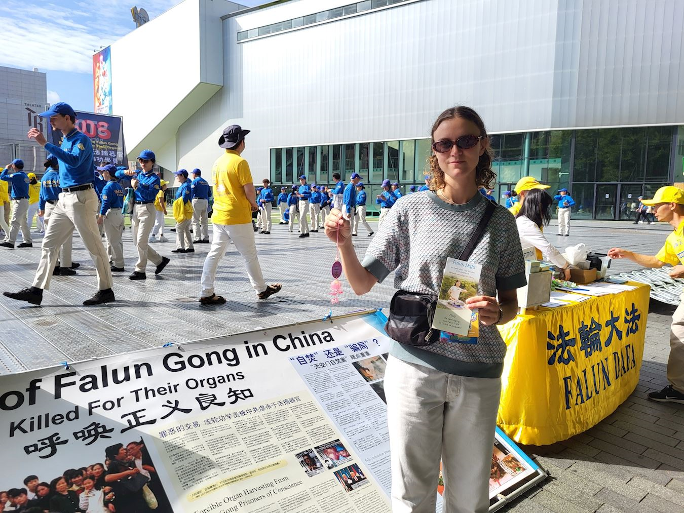 Zelda je prišla praktikantima za više informacija nakon što je pročitala panoe. Zatim je potpisala peticiju za zaustavljanje prisilne žetve organa. Rekla je da ranije nije bila svesna kršenja ljudskih prava. Bila je šokirana i uplašena nakon što je videla fotografije praktikanata u Kini koji su mučeni. Rekla je: „Ne mogu da zamislim da se tako nešto zaista može dogoditi. To je užasno.“ Kada su joj praktikanti rekli da su Istinitost, Blagost, Trpeljivost osnovni principi Falun Dafe, Zelda je pohvalila ove principe i rekla: „Predivno. Najbolje je sprovoditi ih kroz dela.“
