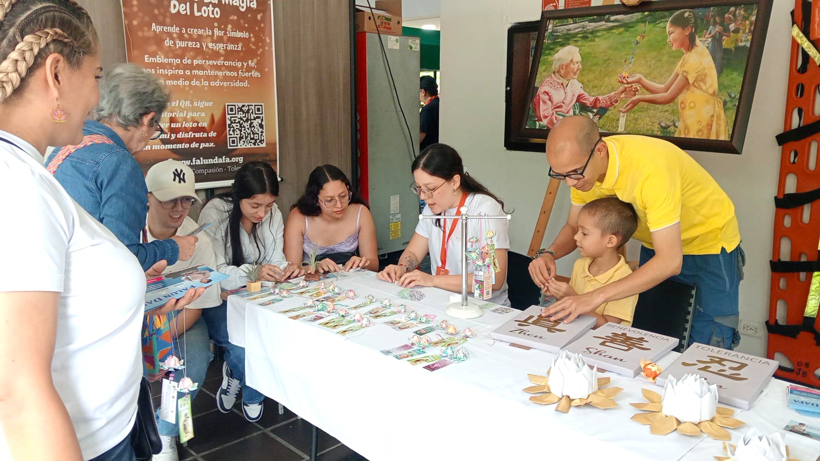 Četveročlana porodica iz Meksika je bila u posjeti Medellínu i poželjela da nauči kako se prave lotosovi cvjetovi. Također su bili veoma zainteresovani za Falun Dafa.