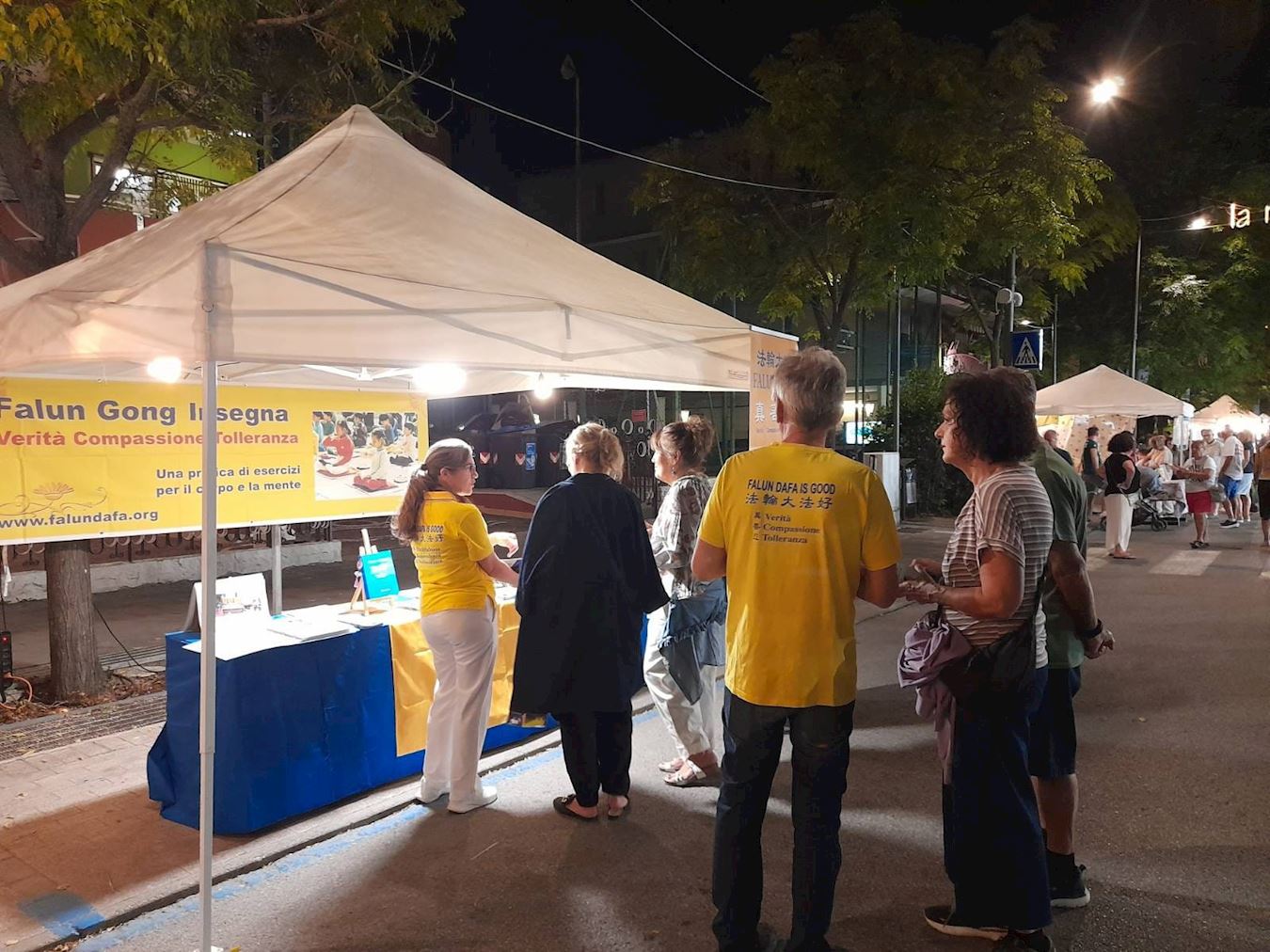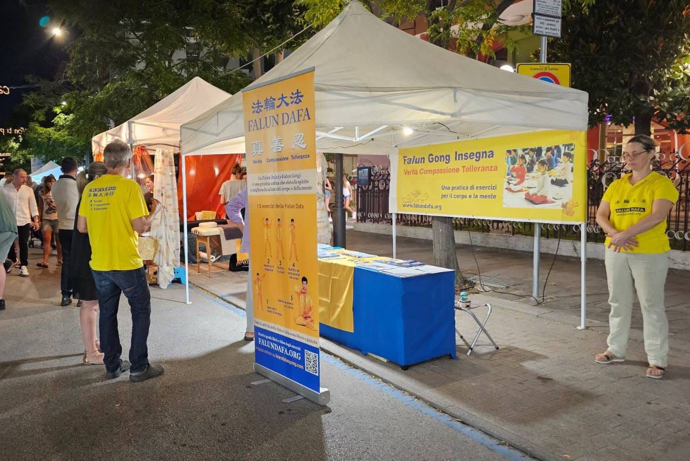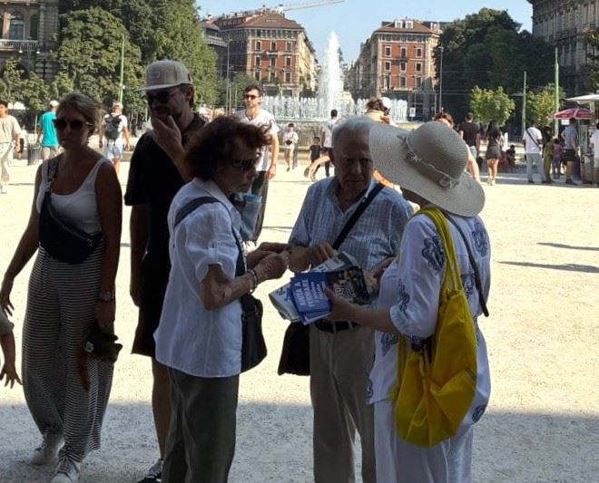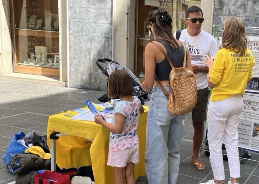 Tokom letnjeg špica turističke sezone, praktikanti u Italiji održali su događaje u nekoliko gradova kako bi turistima predstavili Falun Dafu i razotkrili progon od strane Komunističke partije Kine (KPK). Ljudi iz Italije i drugih zemalja složili su se sa principima Istinitosti-Blagosti-Trpeljivosti i ohrabrili praktikante da nastave sa svojim naporima.