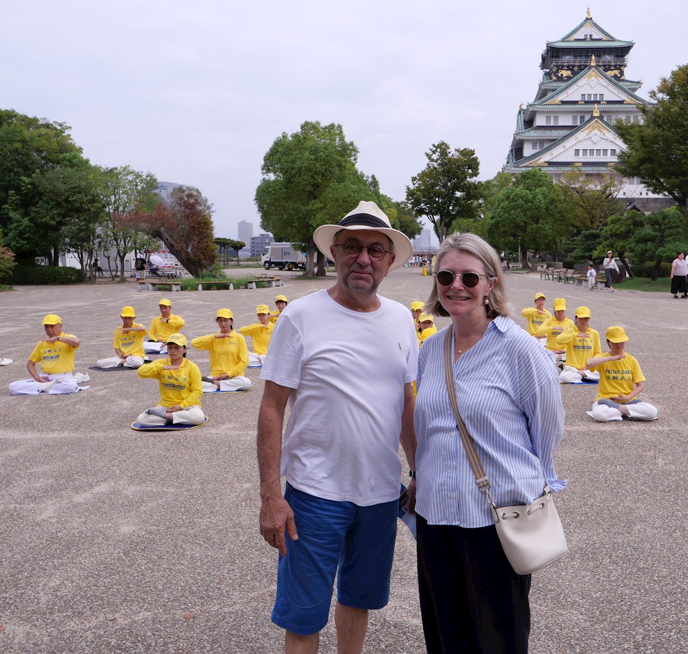 Prije parade, praktikanti Falun Dafa su se podijelili u male grupe kako bi radili vježbe na raznim turističkim atrakcijama. Kada je Ron iz Australije vidio grupno vježbanje u parku dvorca Osaka, tražio je više informacija i rekao je da se slaže sa principima Istinitosti-Dobrodušnosti-Tolerancije