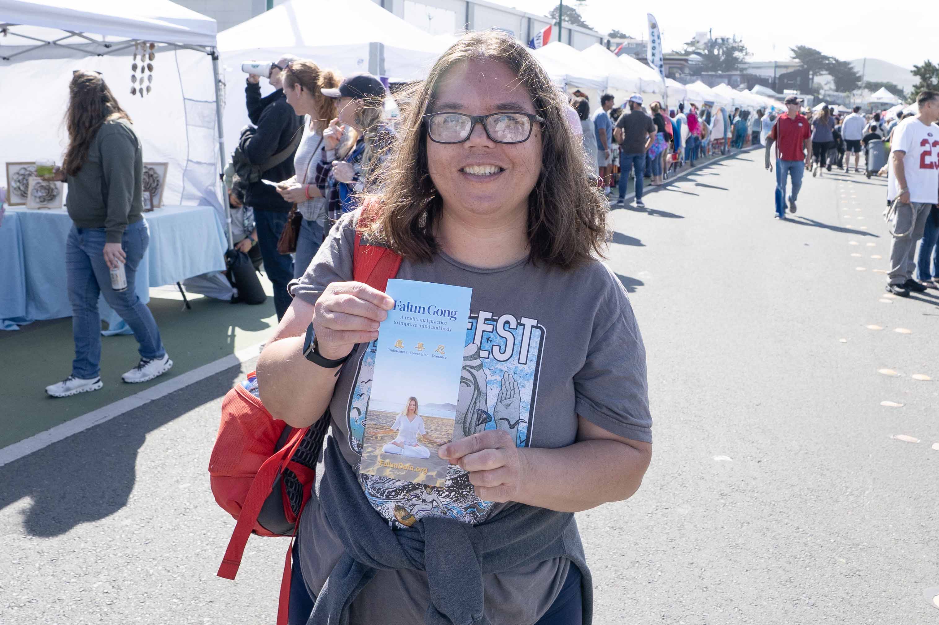 Amy je odrasla u Pacifici, ali se preselila u istočni dio područja Zaljeva. Vratila se pogledati paradu i bila je oduševljena kada je vidjela Falun Gong grupu: „Obožavam praktikante Falun Gonga u paradi. Čine da se osjećam mirno.“