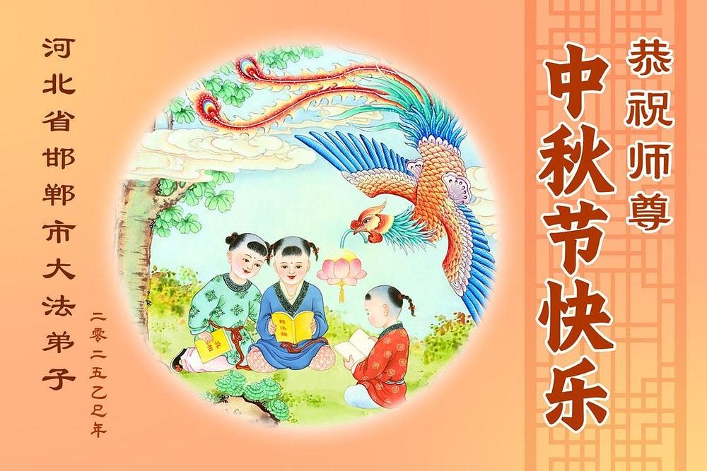 Falun Dafa praktičari iz provincije Hebej s poštovanjem žele Učitelju Li Hongdžiju srećan Praznik sredine jeseni (18 čestitki)