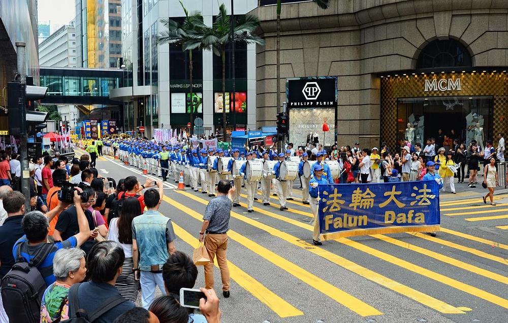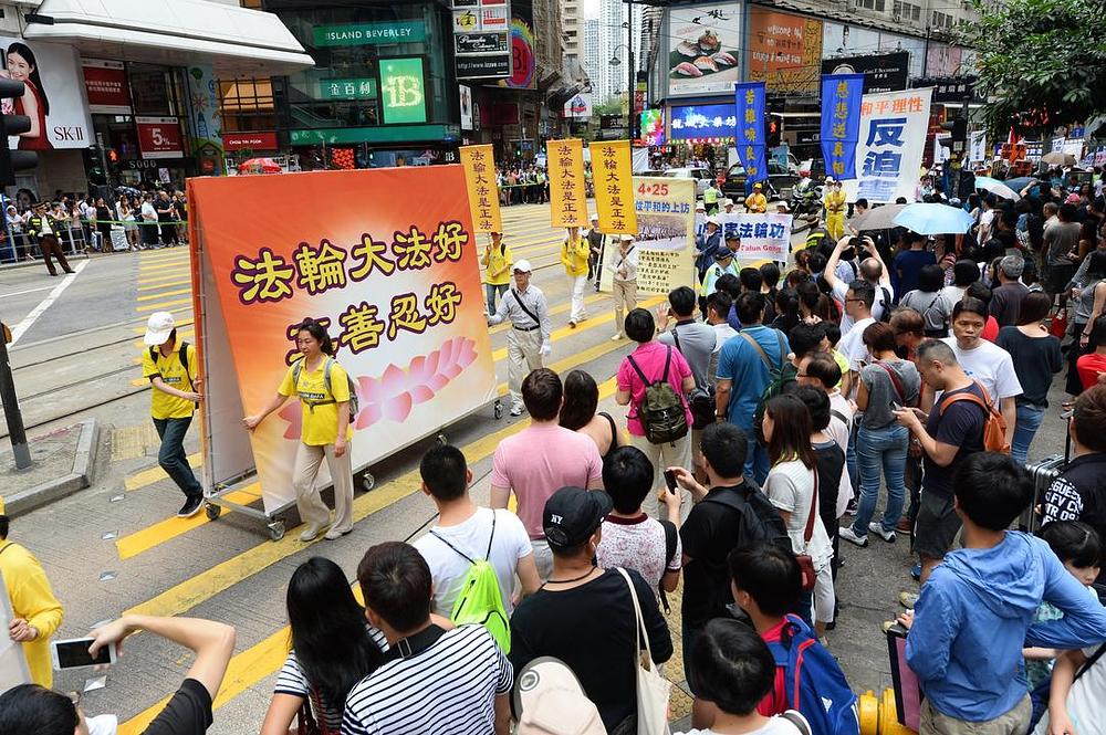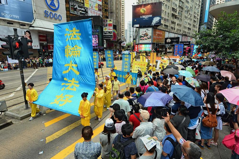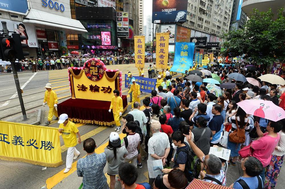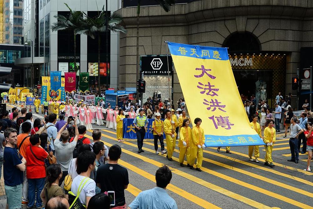 Predvođeni Divine Land Marching Band-om, Falun Gong povorka se protezala od Viktorija Parka, išla kroz Zaljev Caseway i Centar, pored gradskog distrikta sve do memorijalnog parka doktora Sun Yat Sena. Popodnevna je parada trajala dva časa.