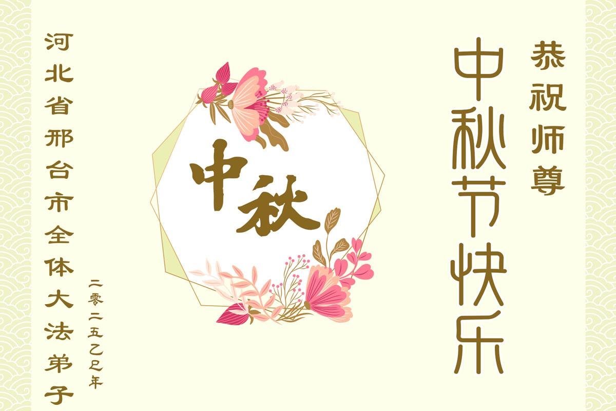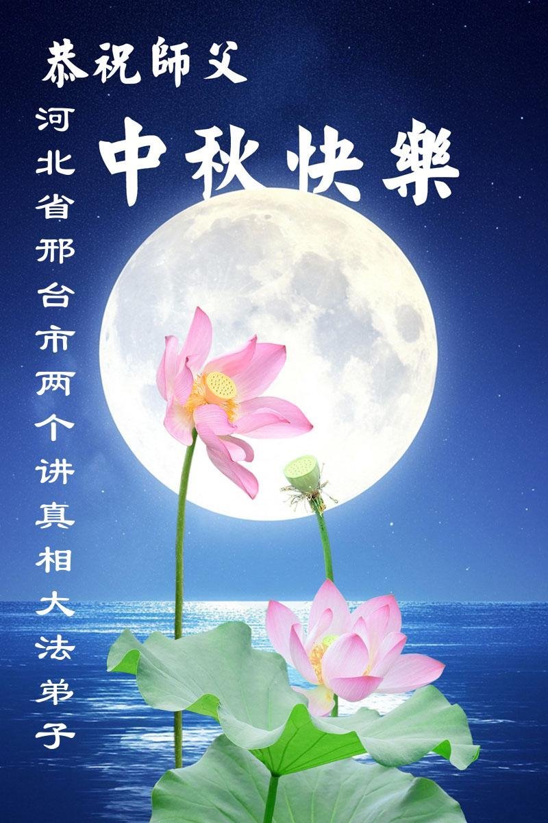 Falun Dafa praktikanti iz provincije Hebej s poštovanjem žele Učitelju Li Hongdžiju srećan Praznik sredine jeseni (19 čestitki)