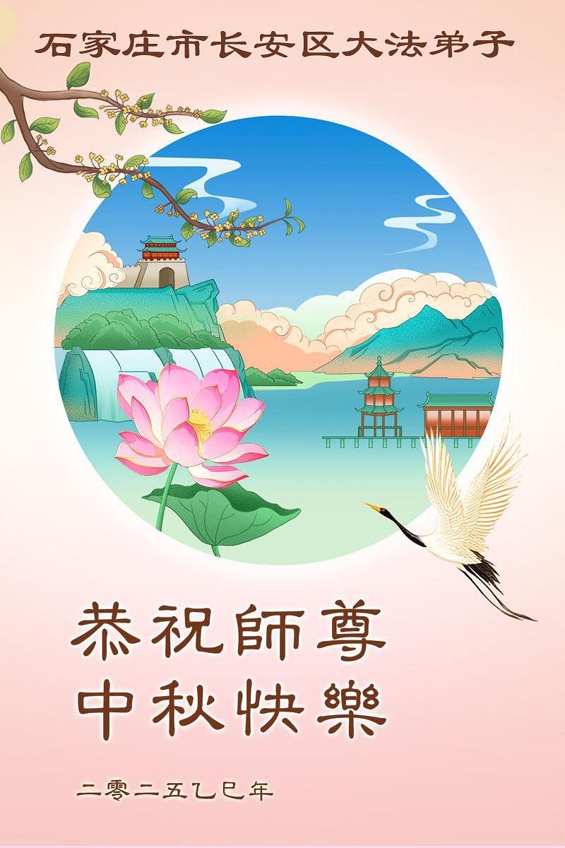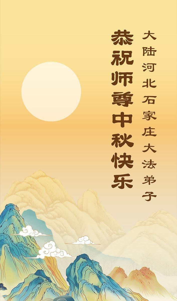 Falun Dafa praktikanti iz grada Šiđadžuang s poštovanjem žele Učitelju Li Hongdžiju srećan Praznik sredine jeseni (18 čestitki)