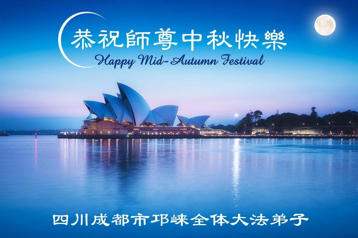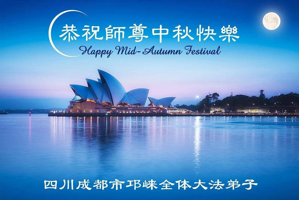 Falun Dafa praktikanti iz grada Čengdua žele poštovanom Učitelju srećan Praznik sredine jeseni!