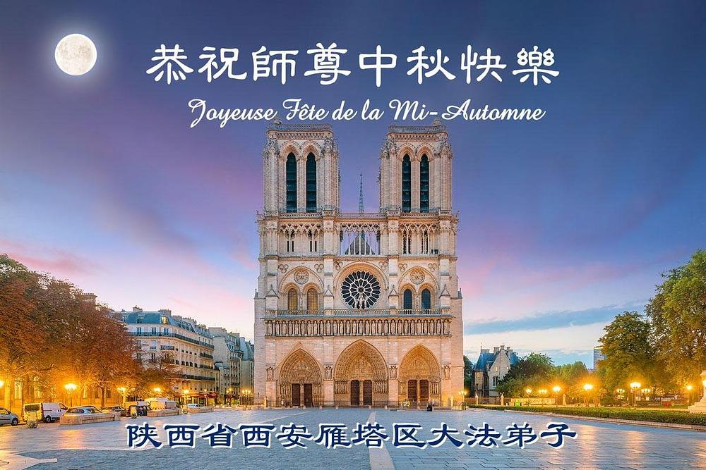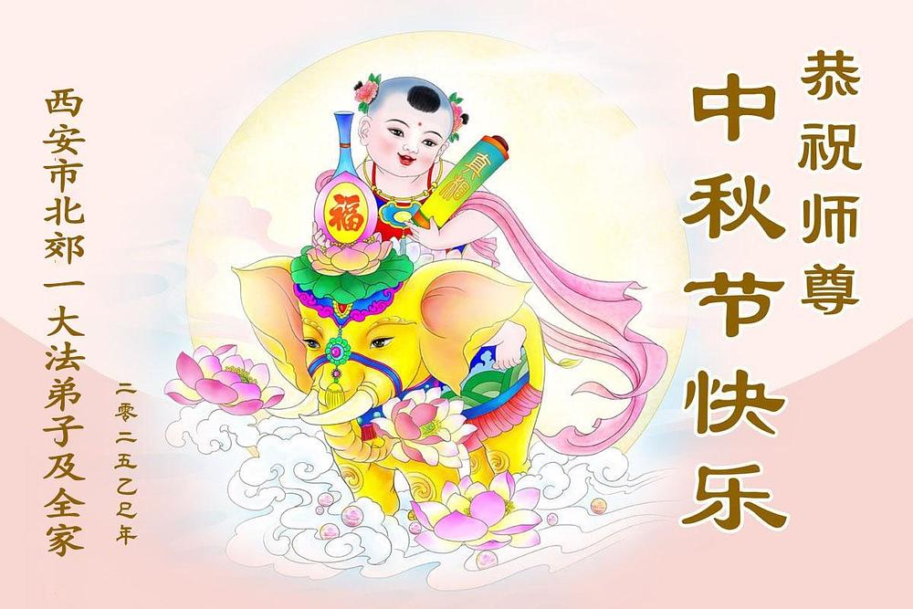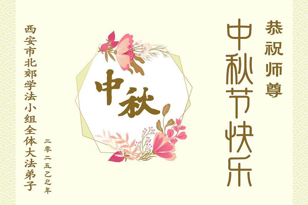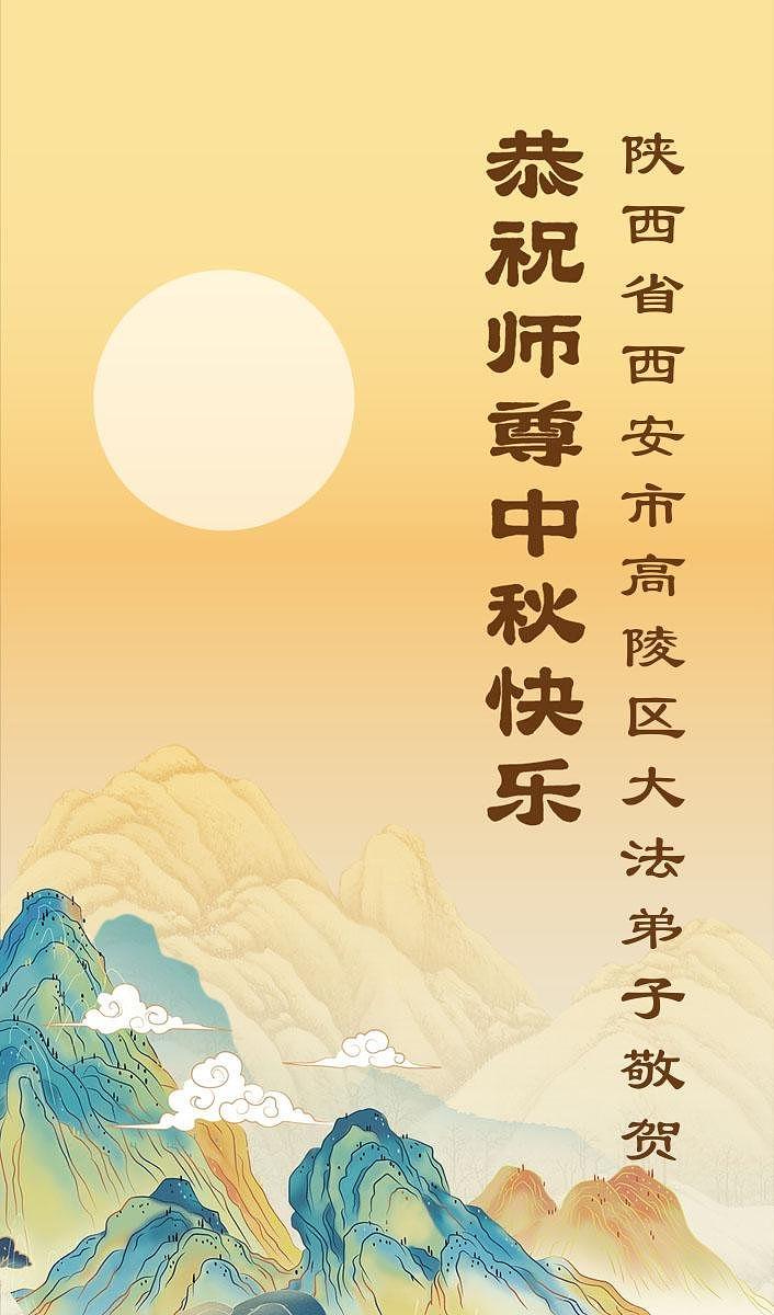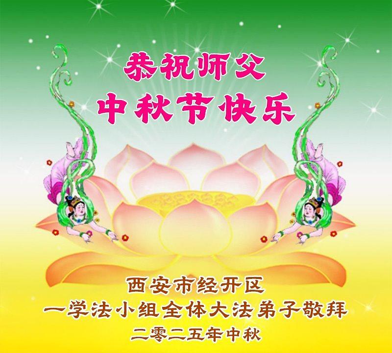 Falun Dafa praktikanti iz grada Si'ana s poštovanjem žele učitelju Li Hongdžiju srećan Praznik sredine jeseni (19 čestitki)