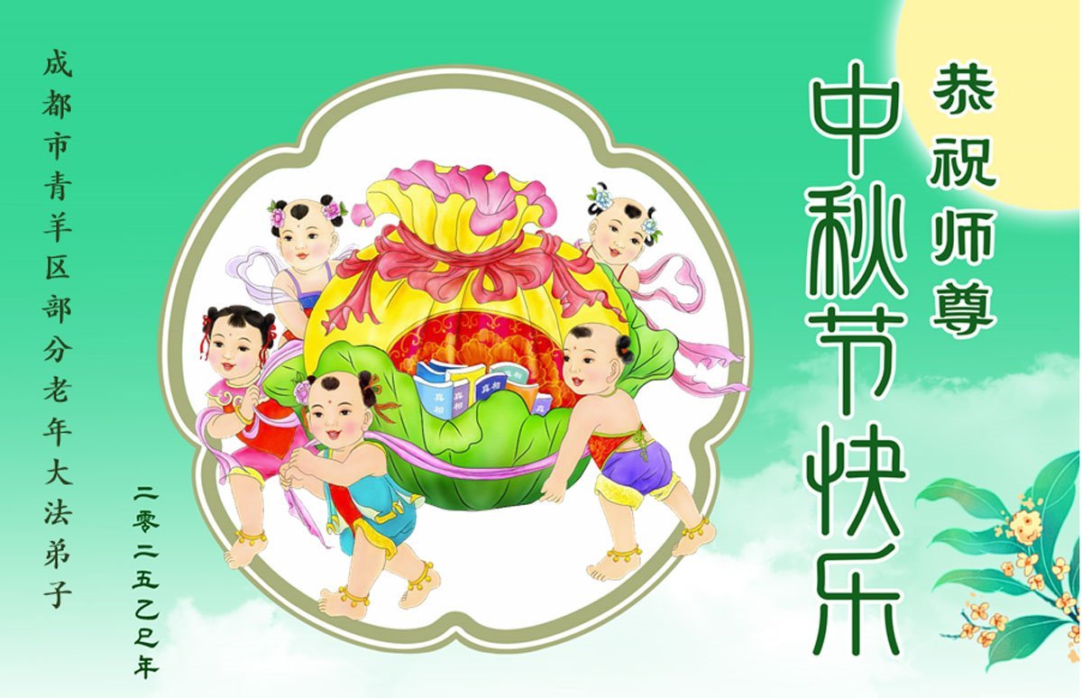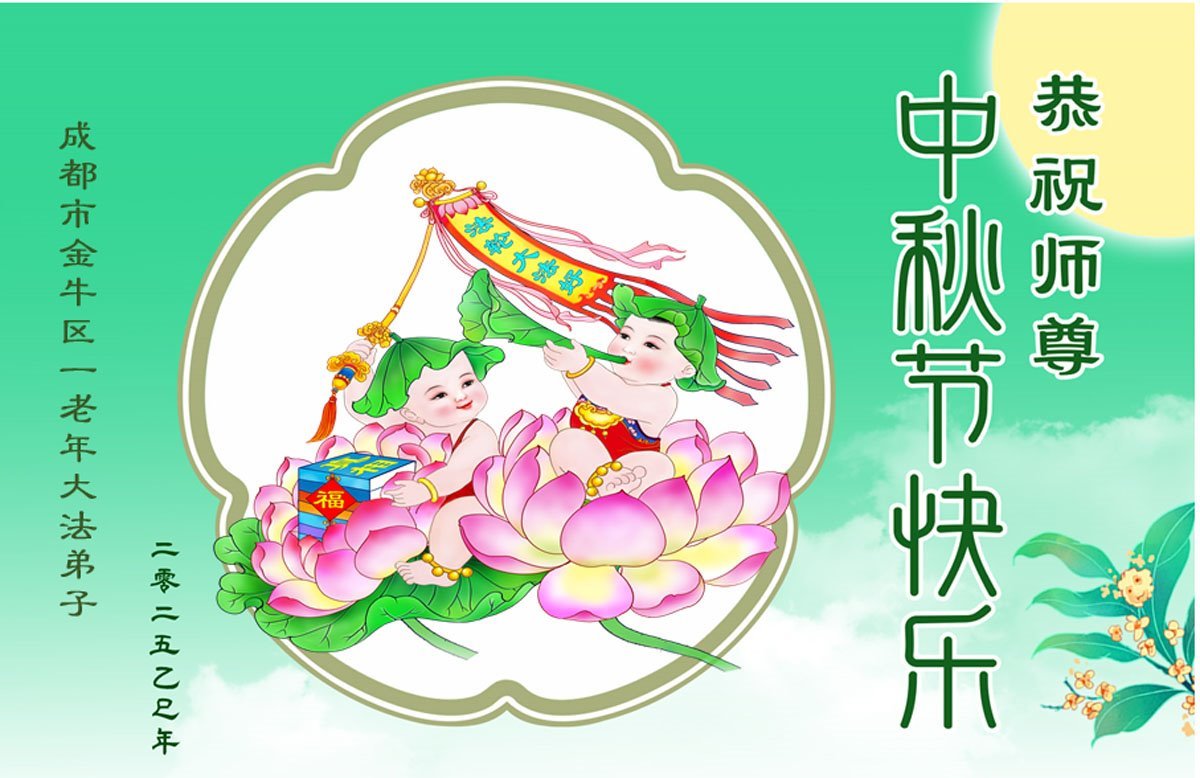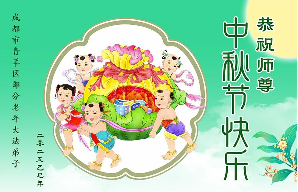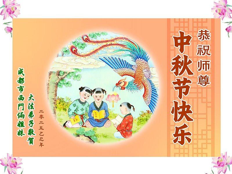 Falun Dafa praktičari iz grada Čengdua s poštovanjem žele Učitelju Li Hongdžiju srećan Praznik sredine jeseni (19 čestitki)