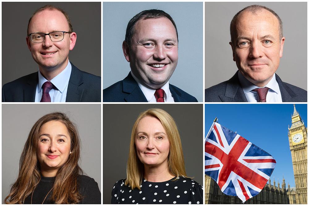 Gornji red (slijeva nadesno): zastupnik Andrew Cooper, zastupnik Ian Murray, zastupnik Mike Kane. Donji red (slijeva nadesno): zastupnica Feryal Clark, zastupnica Jo Platt