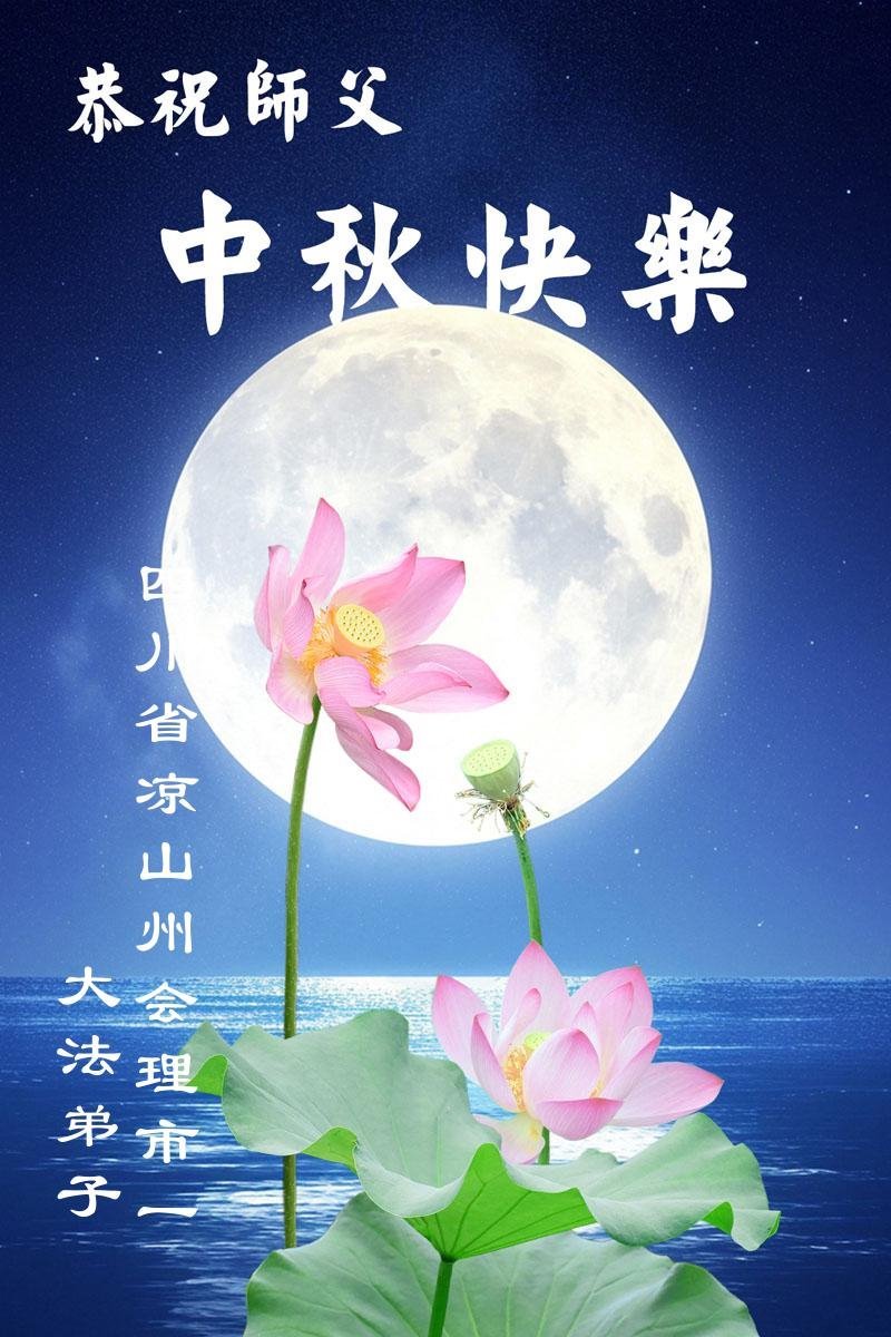 Falun Dafa praktičari u provinciji Sičuan s poštovanjem žele Učitelju Li Hongdžiju srećan Praznik sredine jeseni (18 čestitki)
