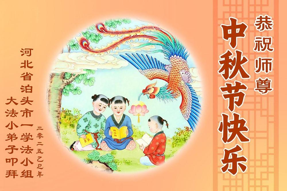 Mladi Falun Dafa praktikant iz grada Čaojang, provincija Liaoning, napisao je: „Učitelju, srećan Praznik sredine jeseni! Hvala vam na vašem saosećajnom spasenju. Veoma sam srećan što sam uronjen u Fa dok odrastam. Učitelju, vredno ste radili! Vi ste uz mene svaki dan!“