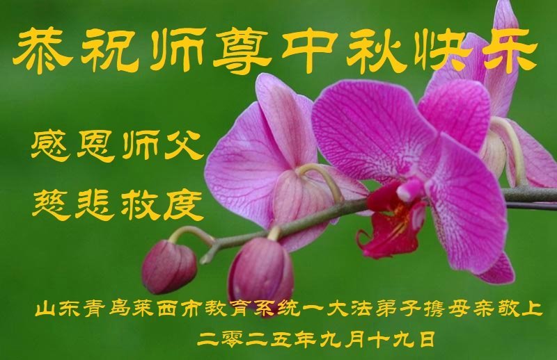 Praktikanti u gradu Bađong, provincija Sečuan, napisali su: „Saosećajni Učitelju, srećan Praznik sredine jeseni! Tokom 26 godina, pod Učiteljevim saosećajnim vođstvom i prosvetljenjem, mi, učenici, stigli smo do današnjeg dana. Pod Učiteljevom saosećajnom zaštitom, prevazišli smo svaku poteškoću. Zahvalni smo na Učiteljevom saosećajnom spasenju! Hvala Vam, Učitelju, na Vašoj saosećajnoj zaštiti! Moramo težiti izvrsnosti, dobro obavljati tri stvari, ispuniti naše predistorijske zavete i pratiti Učitelja da se vratimo u naš pravi dom! Klanjamo se Učitelju u zahvalnosti!”