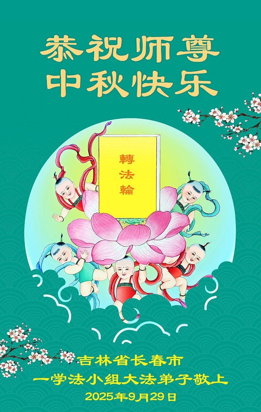 Falun Dafa praktikanti iz grada Čangčuna s poštovanjem žele Učitelju Li Hongdžiju srećan Praznik sredine jeseni (20 čestitki)
