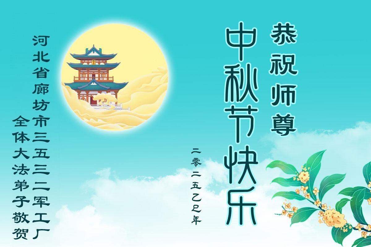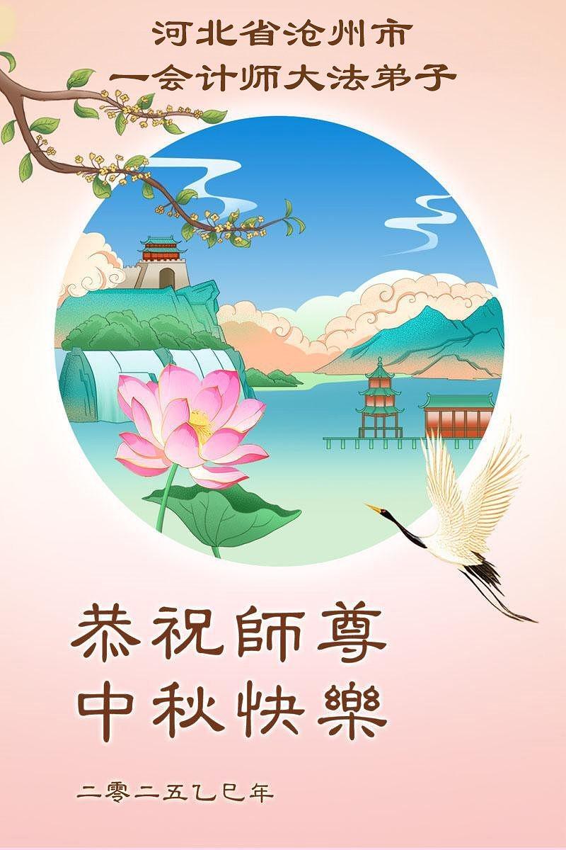 Praktikanti Falun Dafe u različitim profesijama, uključujući pravo, vodozaštitu, računovodstvo, građevinarstvo, elektroenergetske sisteme, naftna polja i upravljanje šumarstvom u provincijama Šandong, Hebej, Đilin, Đijangsu, Šansi, Sičuan i Junan, žele Učitelju srećan Praznik sredine jeseni!