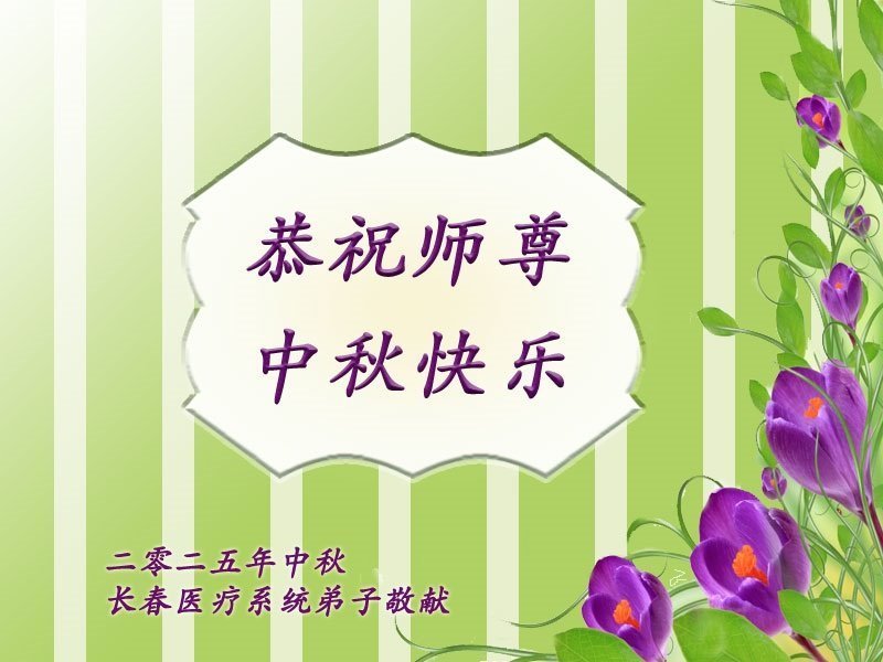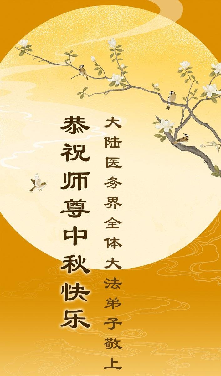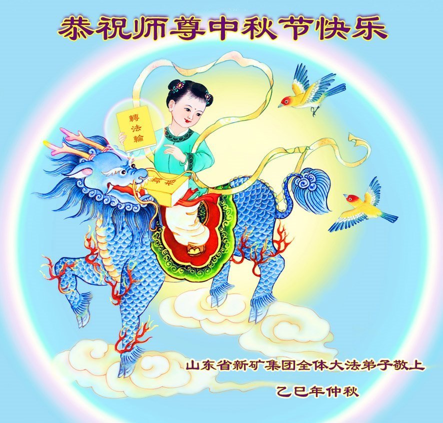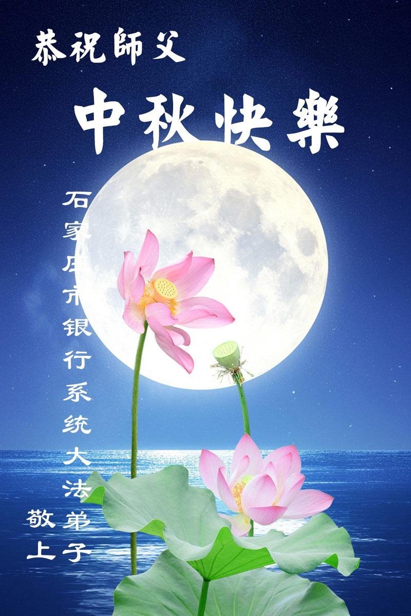 Praktikanti Falun Dafe u kineskom medicinskom sistemu, službi za korisnike, geodetskim i projektantskim projektima, reviziji, železnicama, grafici, poljoprivrednoj melioraciji, rudarstvu, računovodstvu, naftnim poljima, finansijama, bankarstvu i upravljanju šumarstvom u provincijama Džeđang, Šandong, Liaoning, Hebej, Hejlungđang, Đilin i Henan žele Učitelju srećan Praznik sredine jeseni!