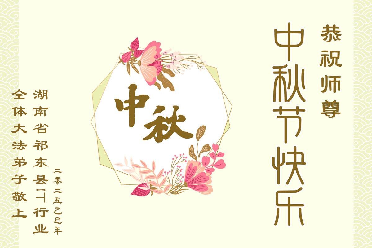 Praktikanti Falun Dafe u različitim profesijama, uključujući bankarstvo, medije i državna preduzeća u Čongkingu i u provincijama Hunan, Hubej, Hebej, Đangsi, Šansi, Heilongđang i Đangsi, žele Učitelju srećan Festival Sredine Jeseni!