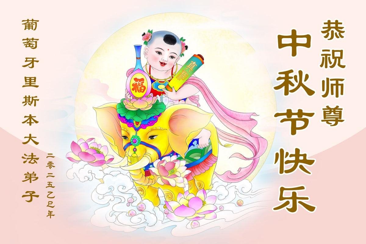 Falun Dafa praktikanti u Lisabonu, Portugal, žele Učitelju srećan Praznik sredine jeseni!