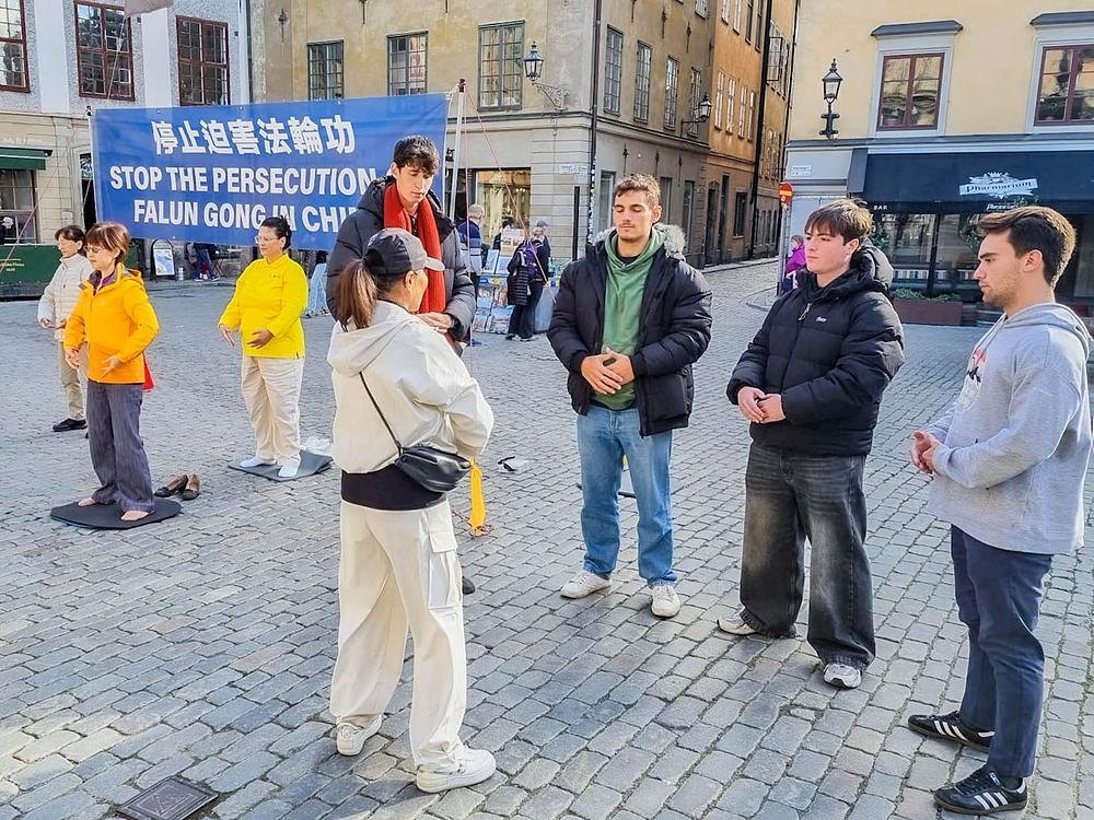 Od petka do nedjelje, tokom dvije sedmice u oktobru 2025. godine, Falun Dafa praktikanti su u Stockholmu održali seriju događaja u blizini Nobelovog muzeja kako bi podizali svijest o Falun Dafa i o tome kako Komunistička partija Kine (KPK) progoni ovu miroljubivu duhovnu praksu iz Kine.