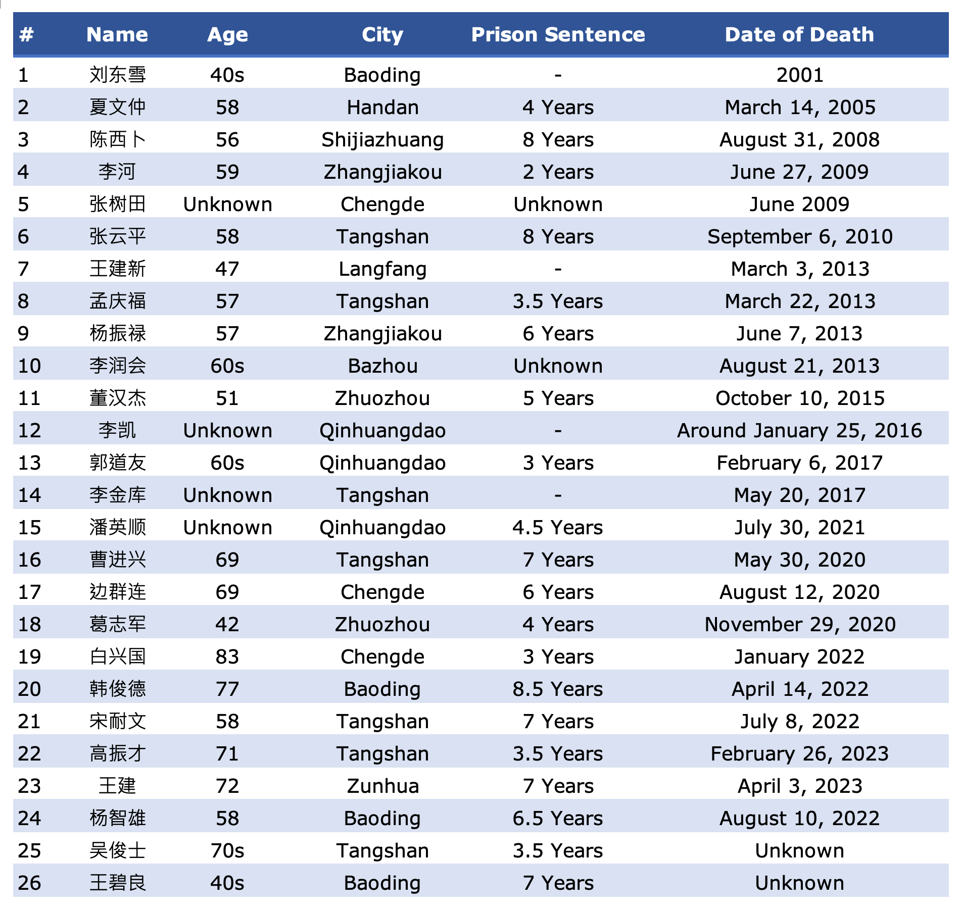 Otkako je Komunistička partija Kine (KPK) u julu 1999. pokrenula progon Falun Gonga, mnogi muški praktikanti Falun Gonga su nakon izricanja presude poslati u zatvor Điđong. U zatvoru je skoro 30 praktikanata progonjeno do smrti.
