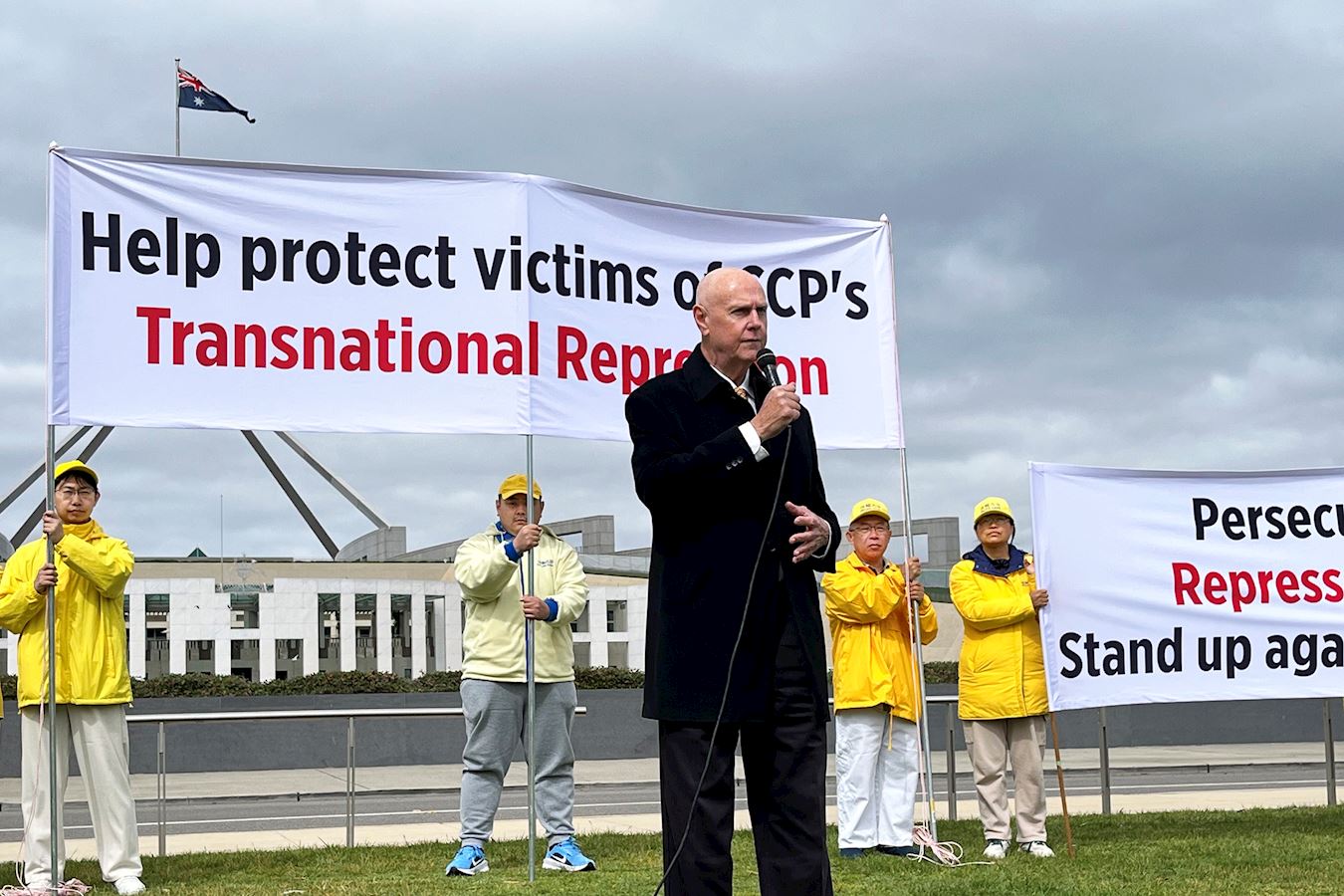 John Deller, glasnogovornik Australijske Falun Dafa asocijacije, je kazao u svom govoru na skupu: “Transnacionalna represija je oblik represije koji prelazi granice, dolazi iz Kine putem sistema Komunističke partije Kine, i ona je opsežna.”