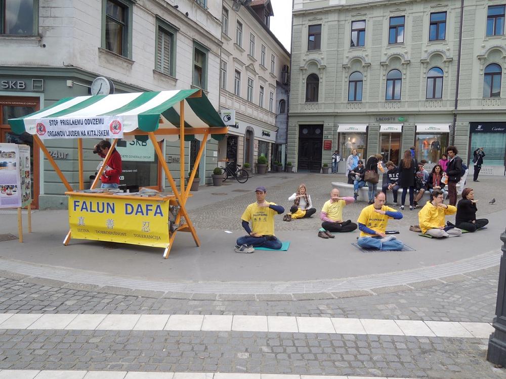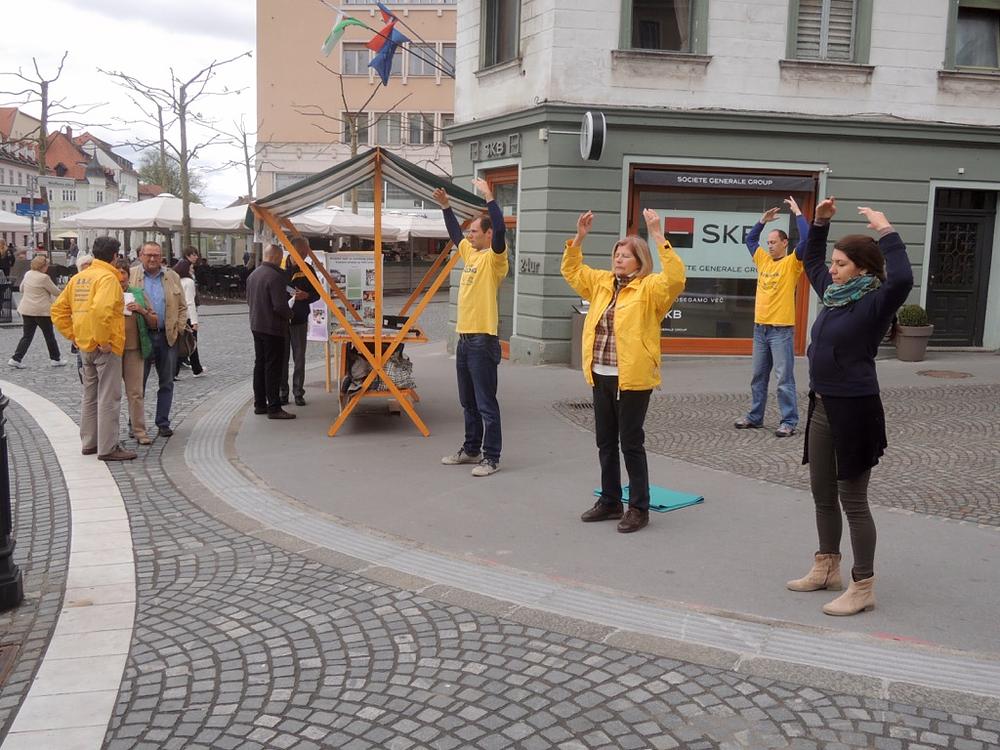 2. maja, praktikanti iz Slovenije, Hrvatske, Austrije i Srbije okupili su se na Prešernovom trgu u Ljubljani, glavnom gradu Slovenije, da bi skrenuli pažnju na ubijanje Falun Gong praktikanata zbog njihovih organa u Kini, koje se odvija u organizaciji državnih organa u Kini.