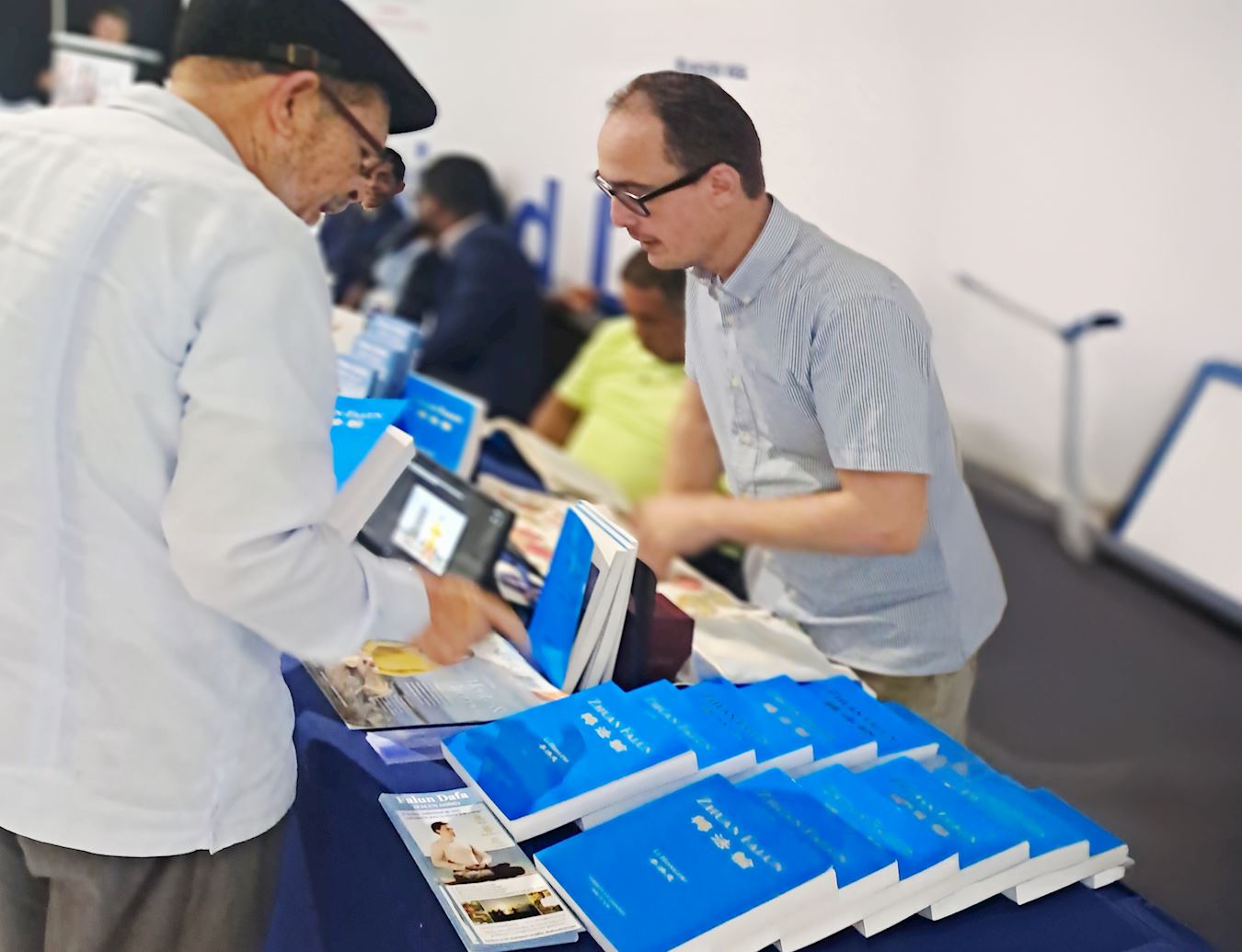 Mnogi posjetioci su kazali da su ih privukle jarke boje praktikantskog štanda, koje su se isticale. „Jarko plava boja Zhuan Falun-a mi je zapela za oko – osjećala sam da je to knjiga koju sam tražila“, kazala je gospođa Lucia. „Osjetia sam posebnu vezu kada sam je dodirnula“, dodala je.