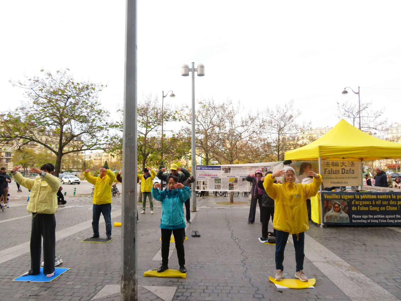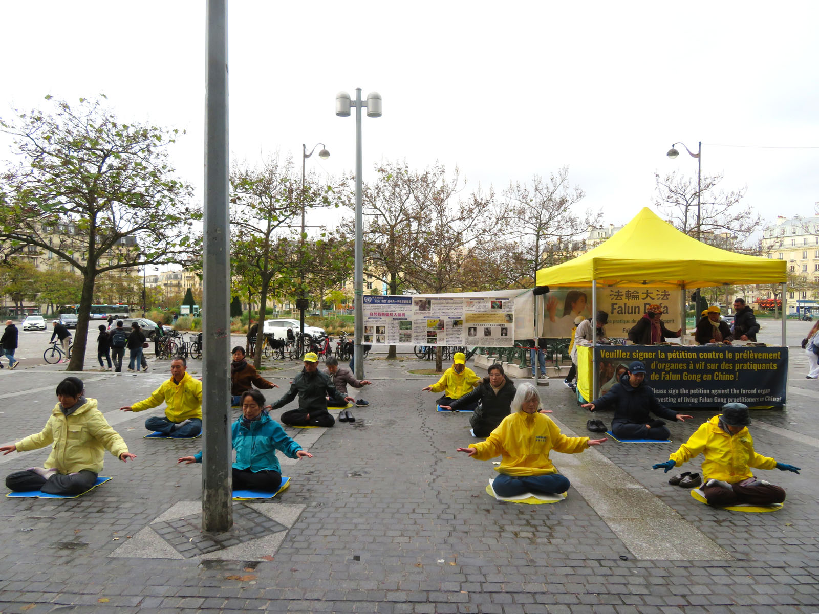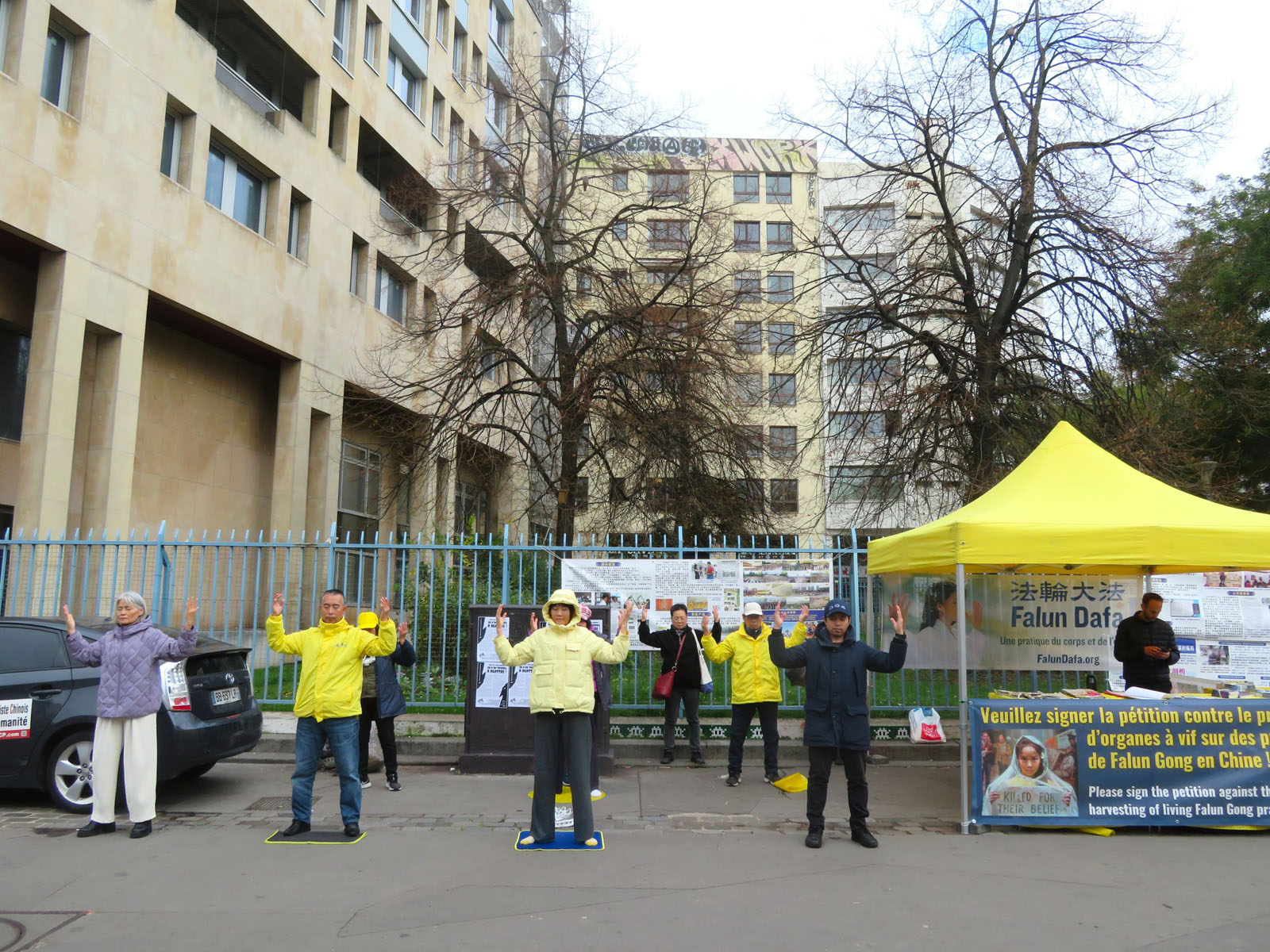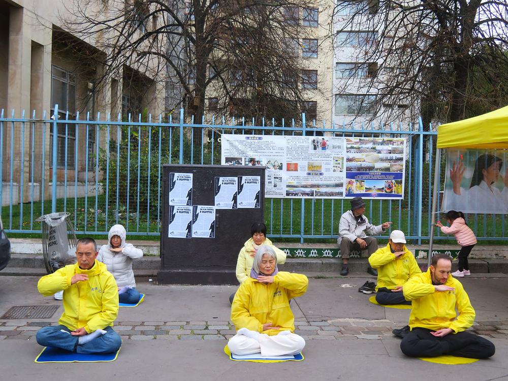11. novembar je državni praznik u Francuskoj. Praktikanti Falun Dafe su se okupili u Belvilu, demonstrirali vežbe i razgovarali sa prolaznicima o duhovnoj praksi i progonu od strane KPK. Mnogi ljudi su potpisali peticiju kojom se poziva na zaustavljanje progona. Nekoliko Kineza se tokom događaja odreklo članstva u KPK i njenim omladinskim organizacijama.