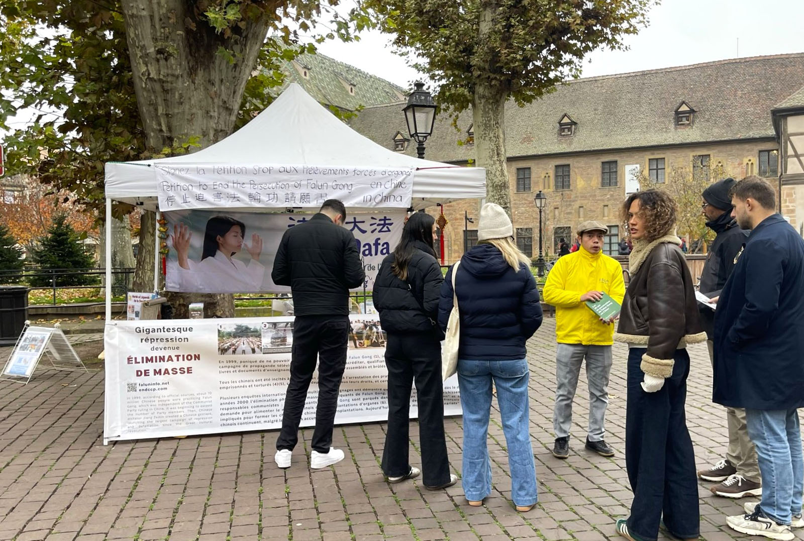 11.novembra 2025, praktikanti u istočnoj Francuskoj održali su aktivnosti u centru Kolmara. Lokalni stanovnici i turisti su saznali za Falun Dafu i mnogi su potpisali peticiju kojom se poziva na zaustavljanje prinudne žetve organa od strane KPK.