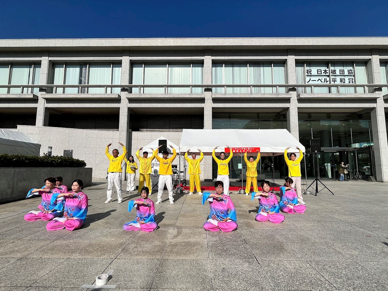 Jošida je došao do informativnog štanda nakon što je gledao nastup praktikanata na bini. Rekao je na kineskom: „Vaš nastup je sjajan.“ Tražio je detalje o tome kako da nauči vežbe. Rekao je: „Nadam se da kineski građani imaju slobodu delovanja i govora, umesto da se plaše da govore ili da budu nepravedno osuđivani. Bilo bi dobro da Kina postane društvo poput Japana, gde ljudi mogu slobodno da izražavaju svoja mišljenja.“
