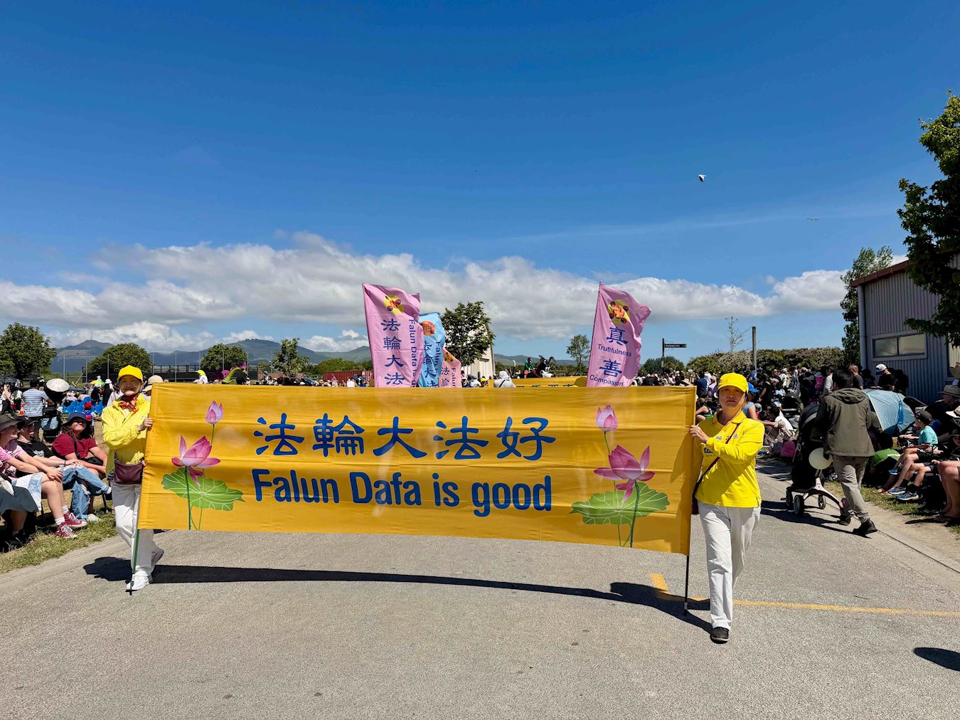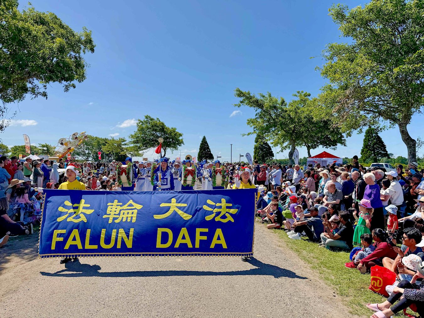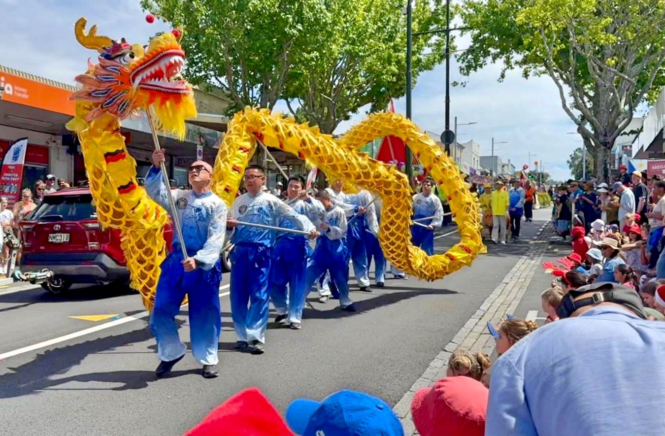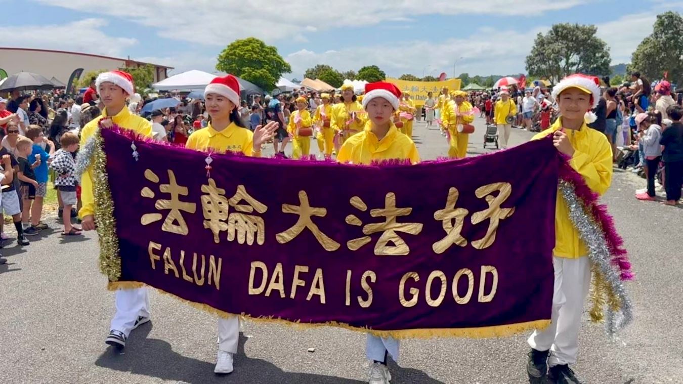 Mnogi gradovi na Novom Zelandu održavaju božićne parade krajem studenog. Ove godine, praktikanti Falun Dafa primili su pozive iz više od 20 gradova i okruga da se pridruže njihovim godišnjim božićnim paradama. Njihov tim s marširajućim orkestrom Tian Guo, plesom zmajeva i bubnjevima oko struka sudjelovali su u paradama u Christchurchu, Onehungi u Aucklandu i Papakuri u Aucklandu, 22. i 23. studenog 2025.
