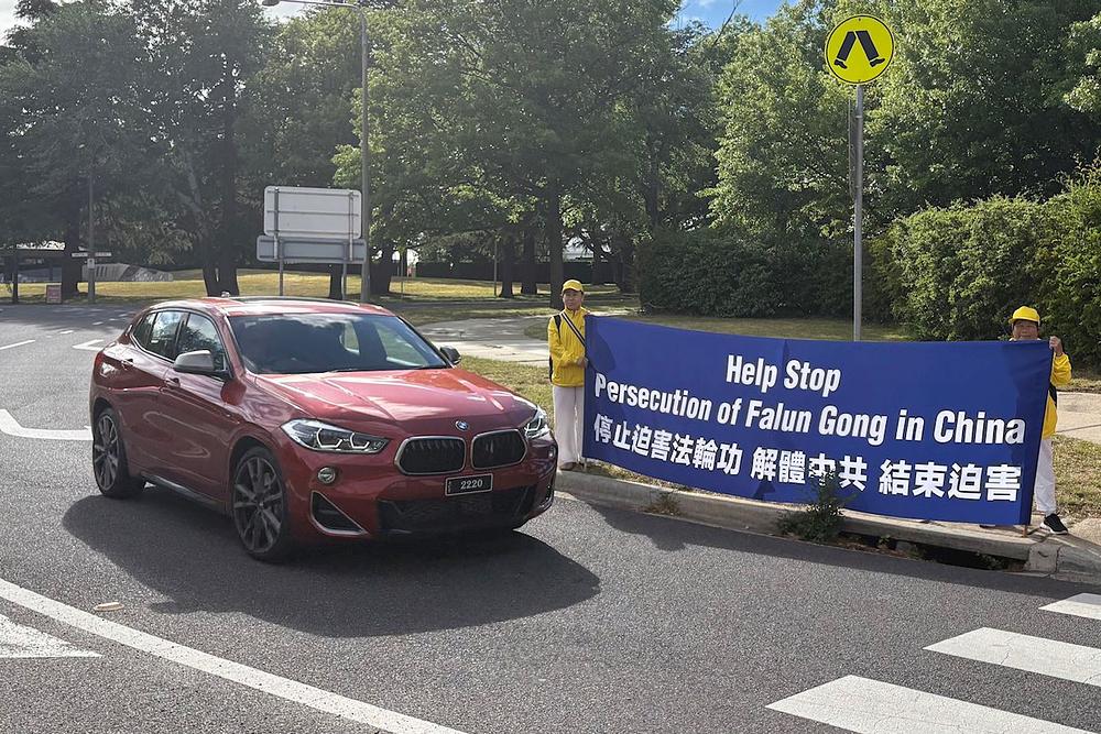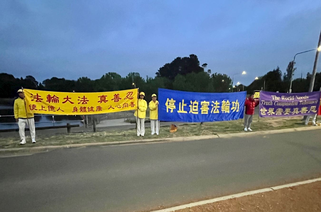 Dana 24. studenog 2025., Falun Dafa praktikanti su održali skup ispred zgrade parlamenta u Canberri kako bi prosvjedovali protiv posjeta Zhao Leji-ja, trećeg najmoćnijeg dužnosnika KPK. On igra važnu ulogu u progonu Falun Dafa (poznatog i kao Falun Gong) koji provodi Komunistička partija Kine (KPK) i prisilnom uzimanju organa koje je odobrila država. Praktikanti su pozvali australsku vladu da ga sankcionira.