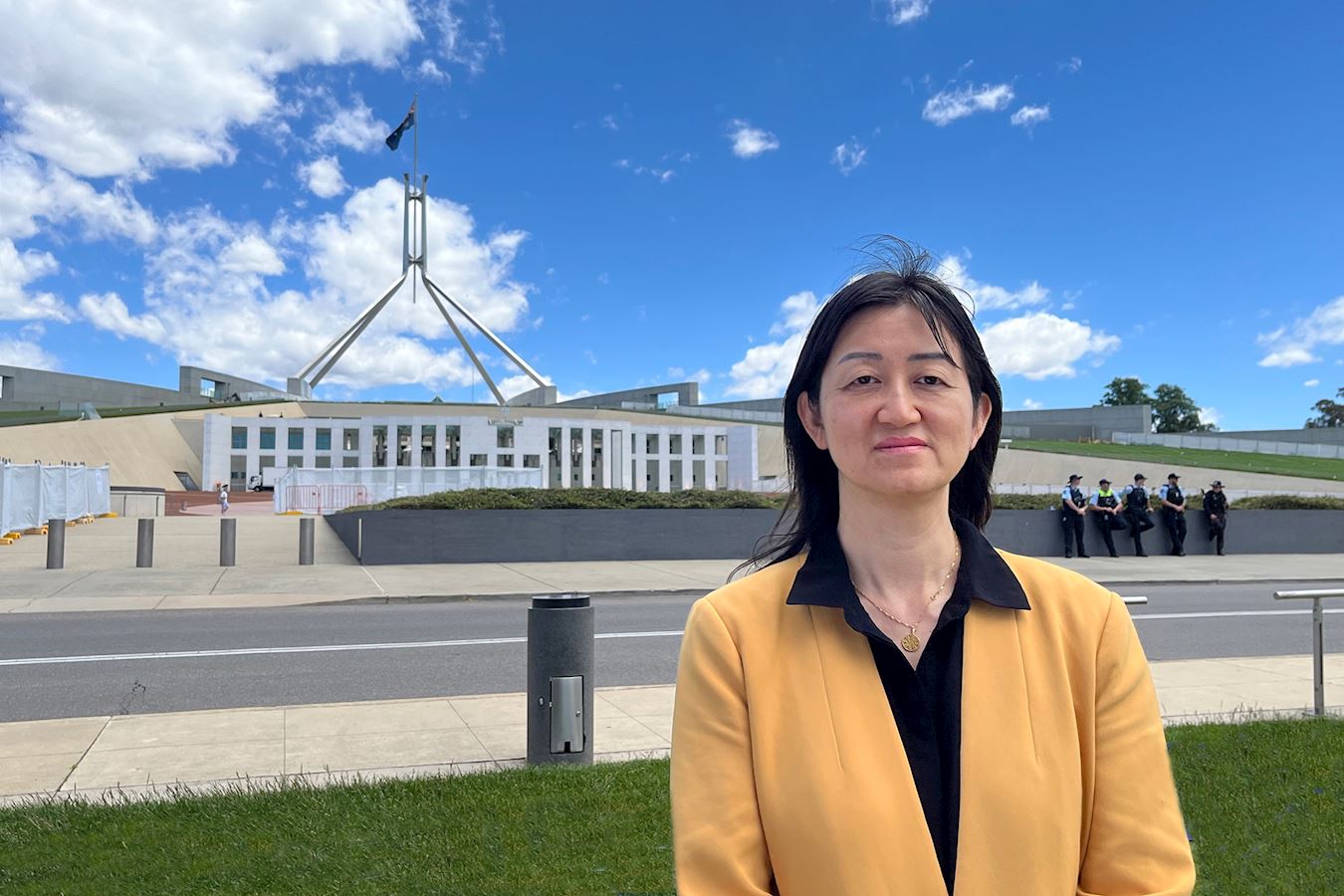 Rekla je: „Progon Falun Gonga traje 26 godina i još uvijek traje. Mnogi rođaci australskih građana su pritvoreni i mučeni u Kini zbog svog vjerovanja. KPK se infiltrira u inozemstvo i pojačava transnacionalnu represiju. Stoga to više nije samo kinesko pitanje, već izravno krši temelje Australije—slobodu i demokraciju.“