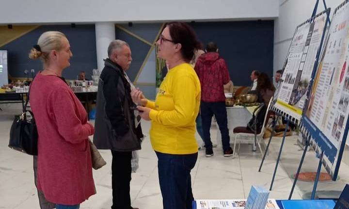 Žena koja je posjetila izložbu fotografirala je štand Falun Dafa i praktikante koji su demonstrirali vježbe te objavila fotografije na Facebooku.