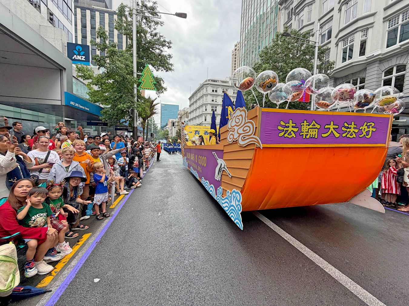 29. i 30. novembra 2025, Falun Dafa praktikanti na Novom Zelandu učestvovali su na pet božićnih parada u četiri grada na Severnom i Južnom ostrvu. Parade su održane u Oklandu, Orevi kod Oklanda, Rotorui, Danidinu i Inverkargilu.