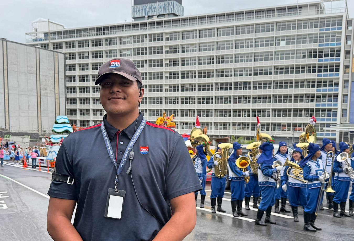 Kamrin, koji je radio u obezbeđenju na „Farmers“ božićnoj paradi u Oklandu, rekao je: „Moja prabaka je Kineskinja, pa mi je drago što vidim Kineze na ovoj paradi. Uniforme orkestra su prelepe.“
