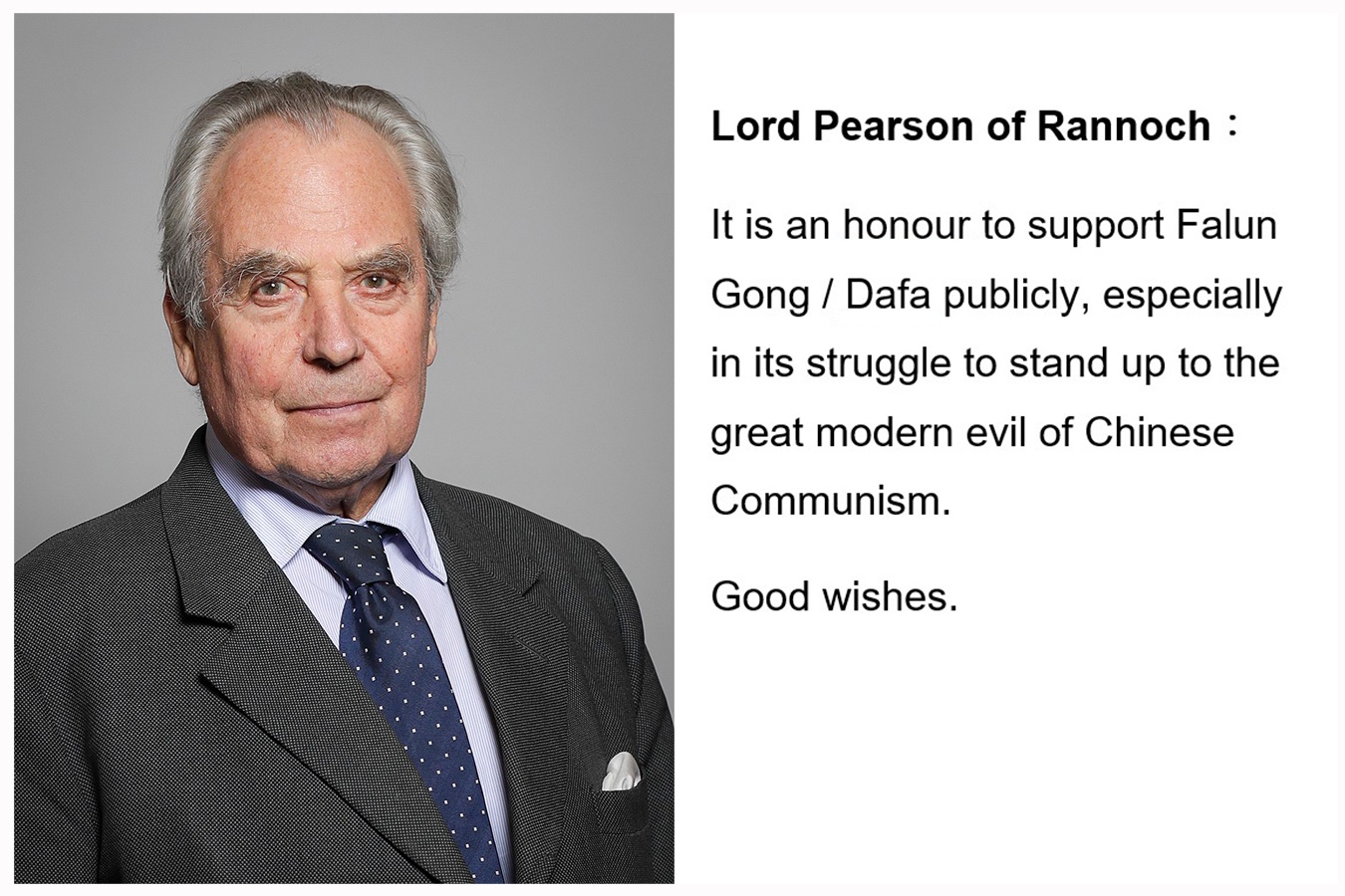 Lord Pirson iz Ranoha je napisao: „Čast mi je javno podržati Falung Gong / Dafu, posebno u njihovoj borbi da se suprotstave velikom modernom zlu kineskog komunizma.“