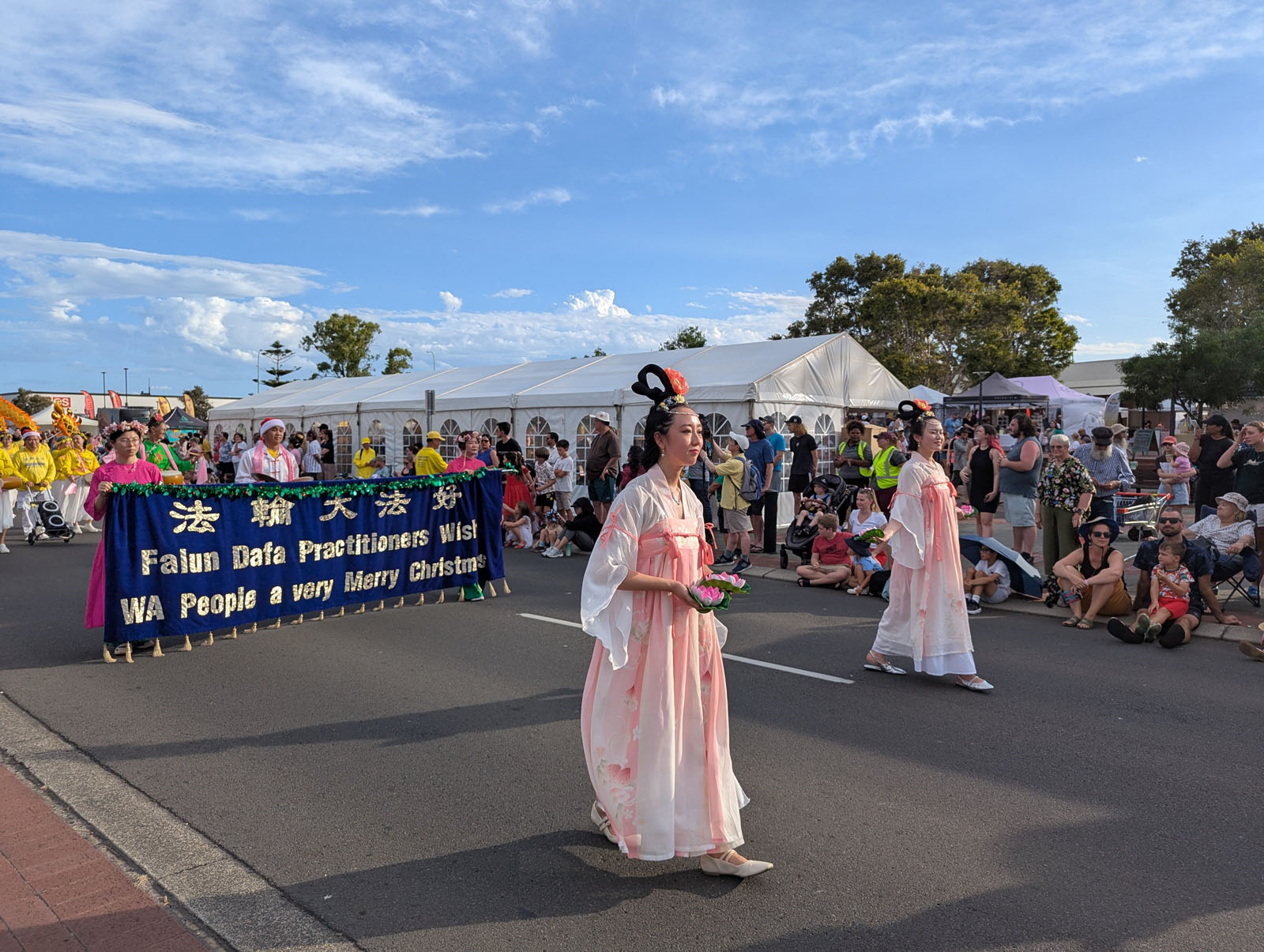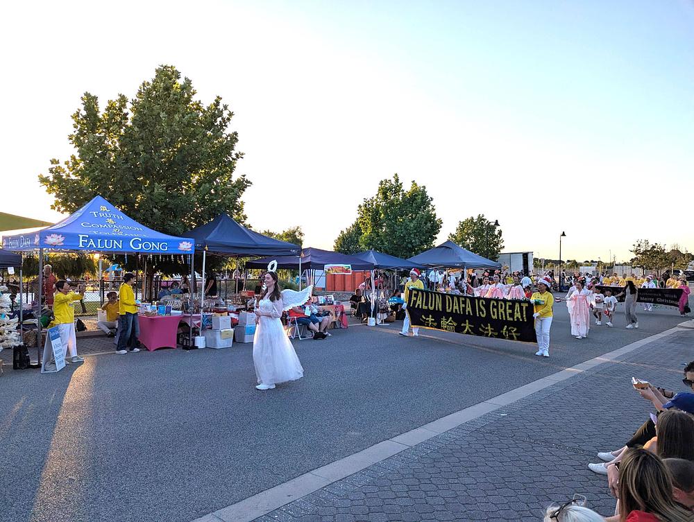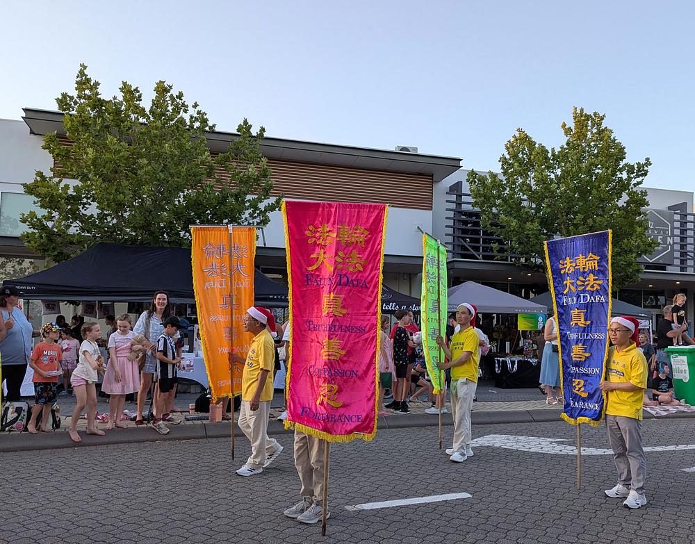 Falun Dafa praktikanti iz Zapadne Australije su učestvovali u dvije božićne parade krajem 2025. godine. Postavili su štand i učestvovali u paradi u Ellenbrooku 13. decembra. Sljedećeg dana pridružili su se paradi u Bunburyju, u kojoj su osvojili prvo mjesto u kategoriji Pješačka grupa.