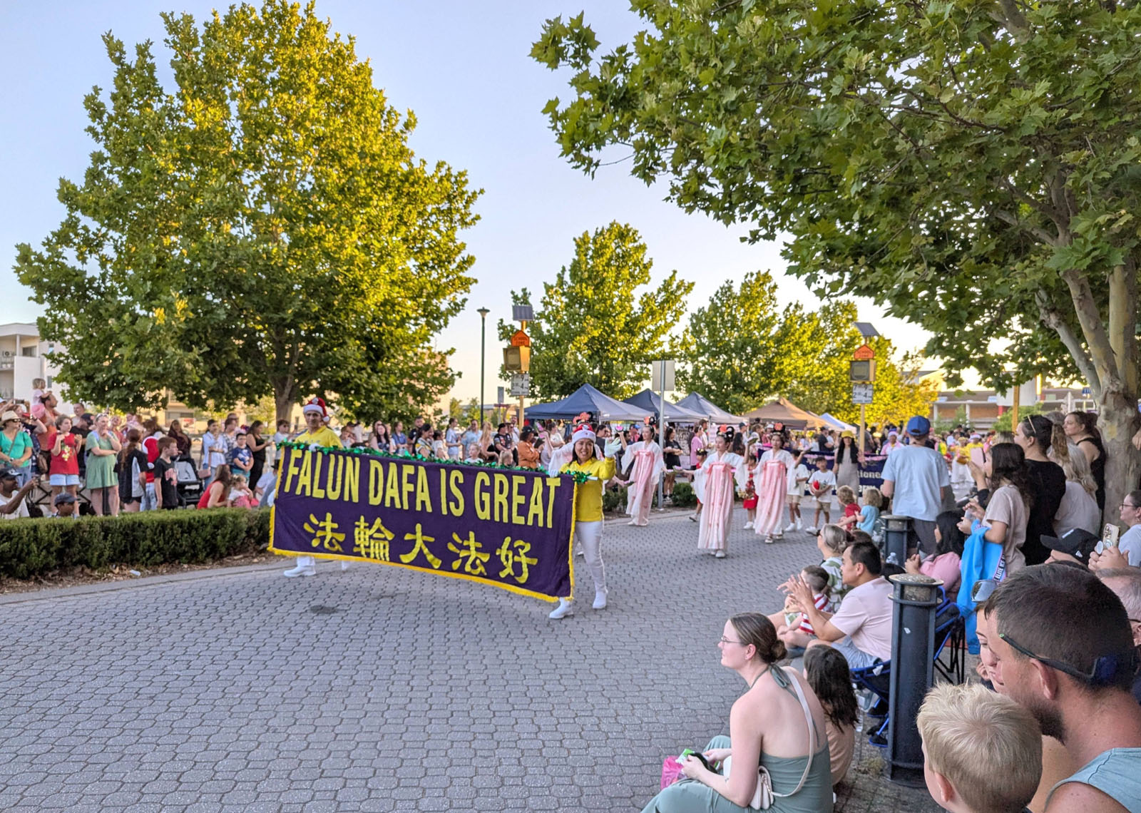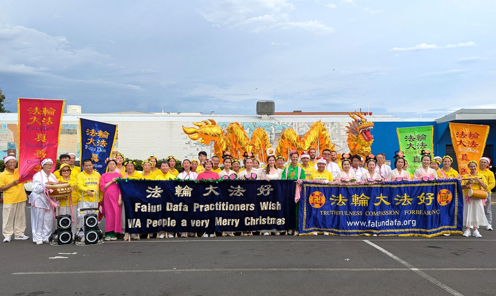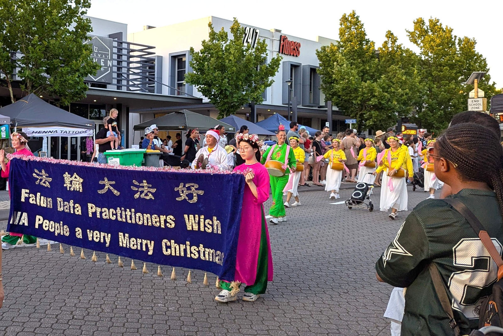 Falun Dafa praktikanti iz Zapadne Australije su učestvovali u dvije božićne parade krajem 2025. godine. Postavili su štand i učestvovali u paradi u Ellenbrooku 13. decembra. Sljedećeg dana pridružili su se paradi u Bunburyju, u kojoj su osvojili prvo mjesto u kategoriji Pješačka grupa.