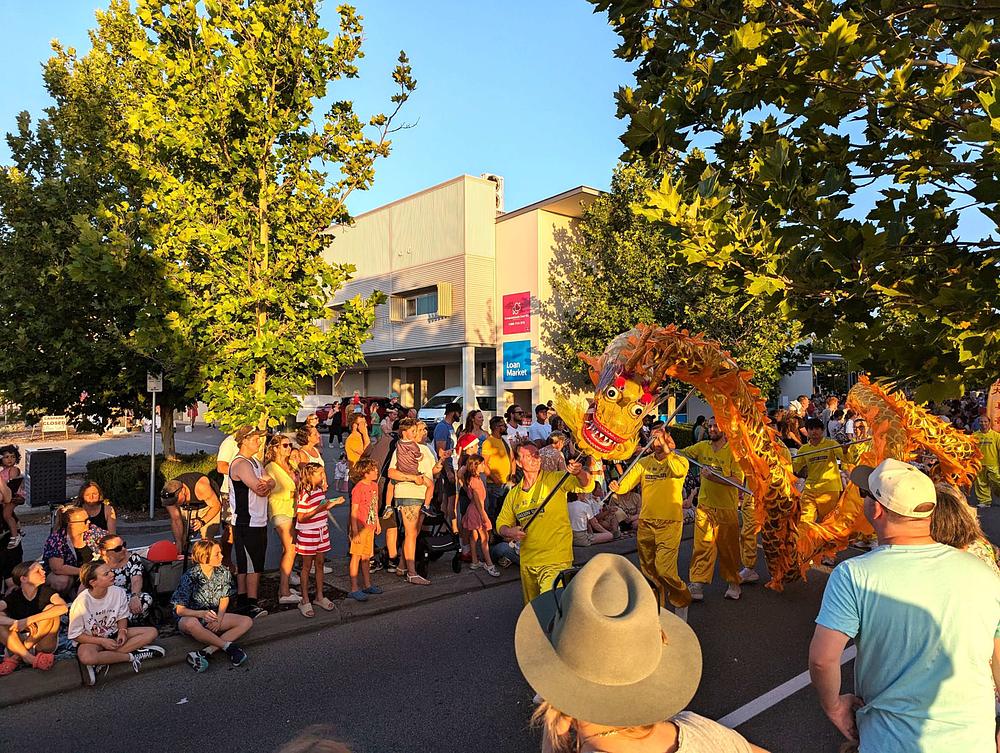 Mnogi ljudi su pohvalili nastup praktikanata tokom Božićne parade grada Bunburyja, koja se održala uvečer 14. decembra. U njihovoj grupi bile su nebeske vile, grupa s dobošima i grupa koja je izvodila ples kineskog zmaja. Blistave boje, zajedno s inspirativnim zvucima doboša uz živahnog zlatnog kineskog zmaja, stvorile su svečanu i srdačnu atmosferu. Kineski zmaj i vile komunicirali su s gledaocima koji su im aplaudirali.